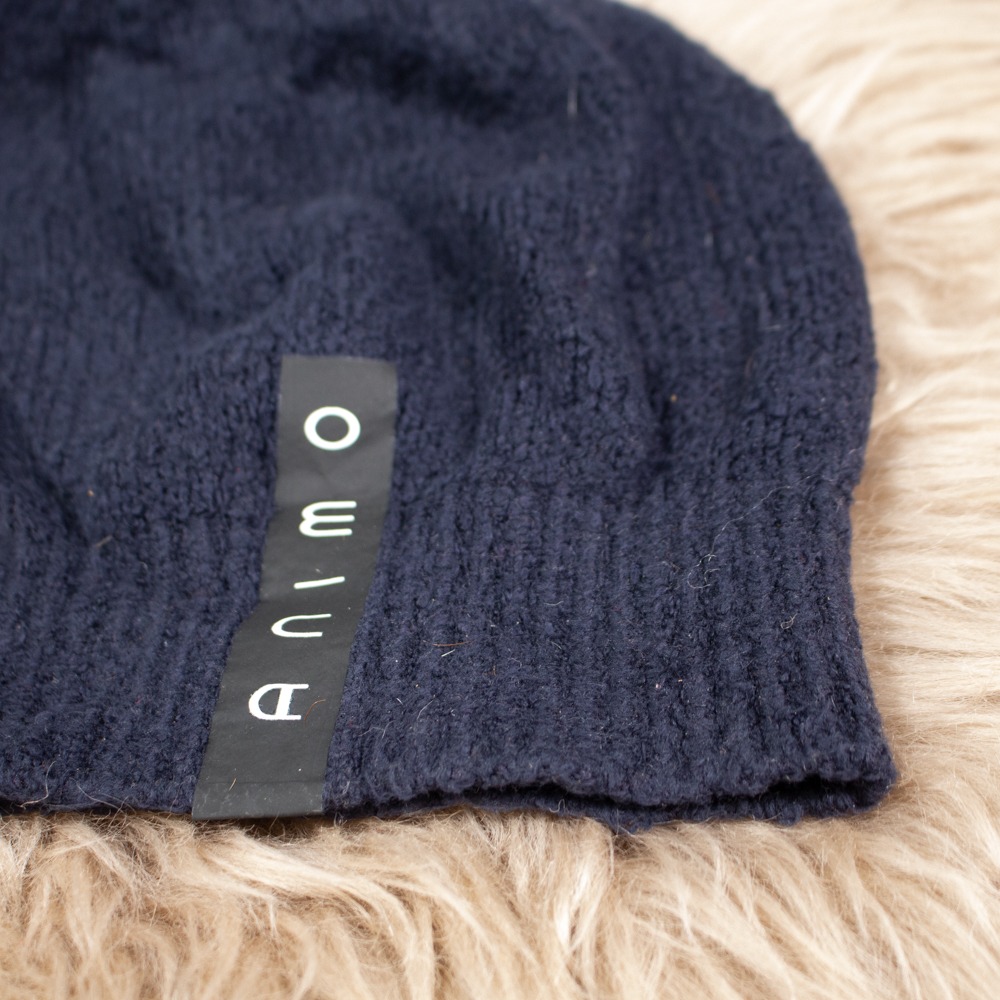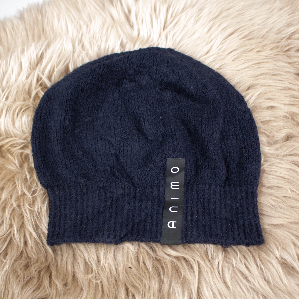 Die Mütze von Animo hat eine Einheitsgröße und ist dunkelblau. Sie hat leichte Gebrauchsspuren.