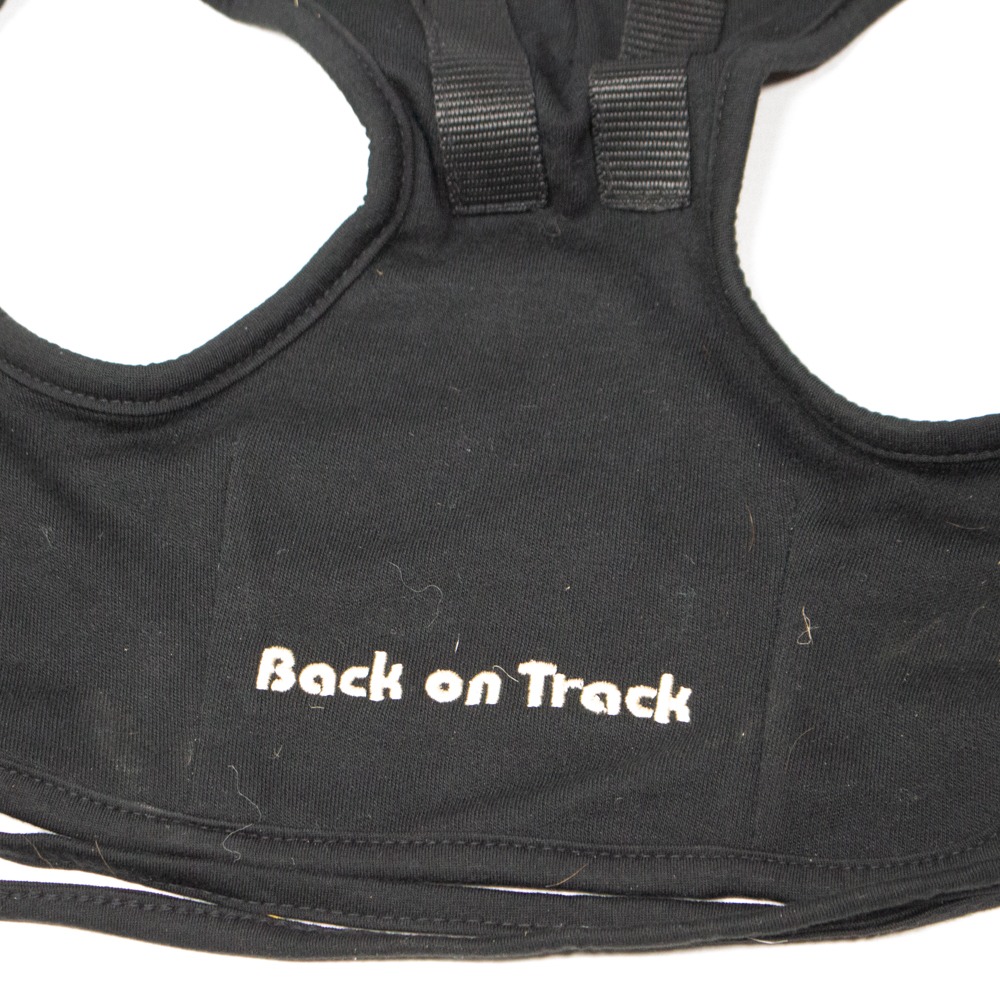 Der Genickschoner von Back on Track ist schwarz und hat Größe S. Der Schoner hat leichte Gebrauchsspuren.