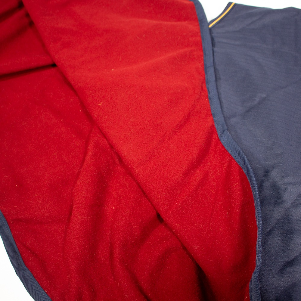 Die Ausreitdecke von Bucas hat eine Rückenlänge von 155 cm. Sie hat einen Schweifriemen und einen Schweiflatz. Die Decke hat leichte Gebrauchsspuren.