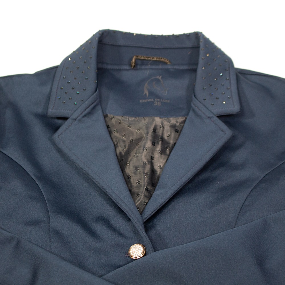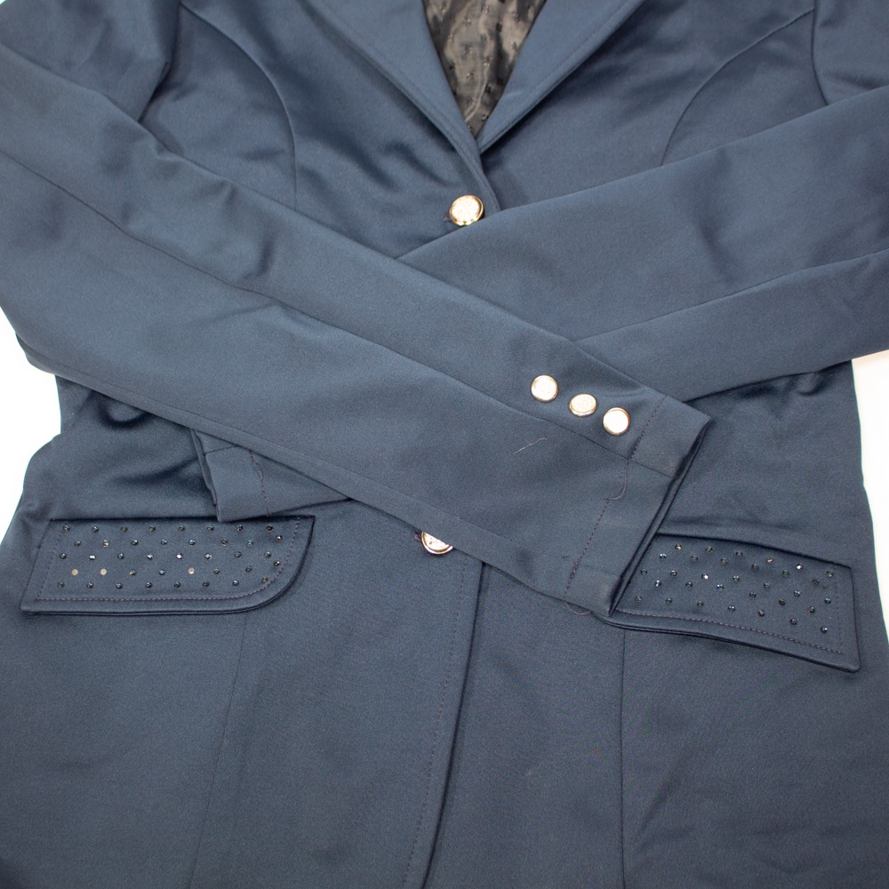 Das Turnierjacket von Loesdau ist dunkelblau und hat Größe 36. Das Jacket ist hat leichte Gebrauchsspuren.