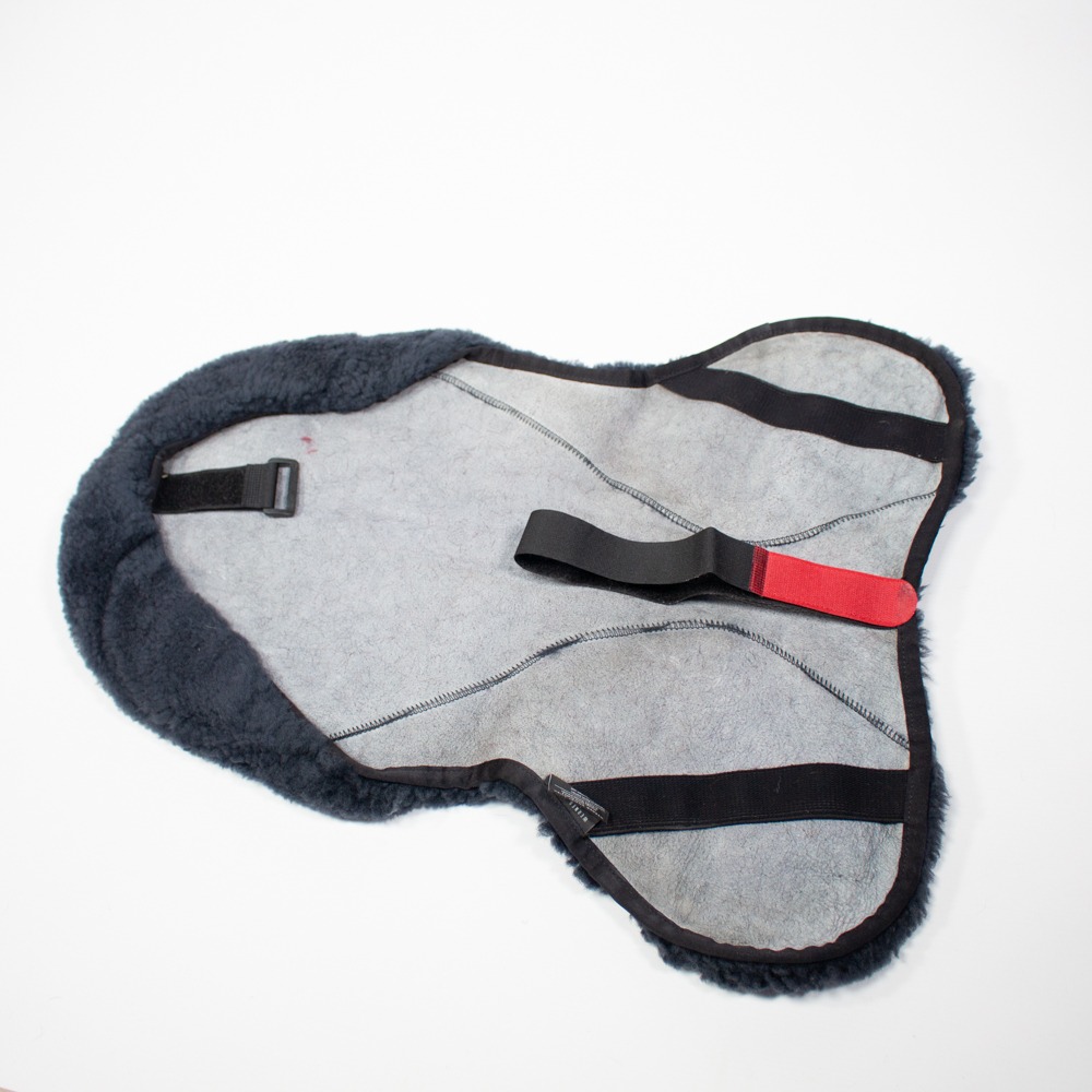 Der Sattelsitzbezug von Christ ist schwarz und hat Größe Warmblut. Er ist aus Lammfell gefertigt. Er hat leichte Gebrauchsspuren.