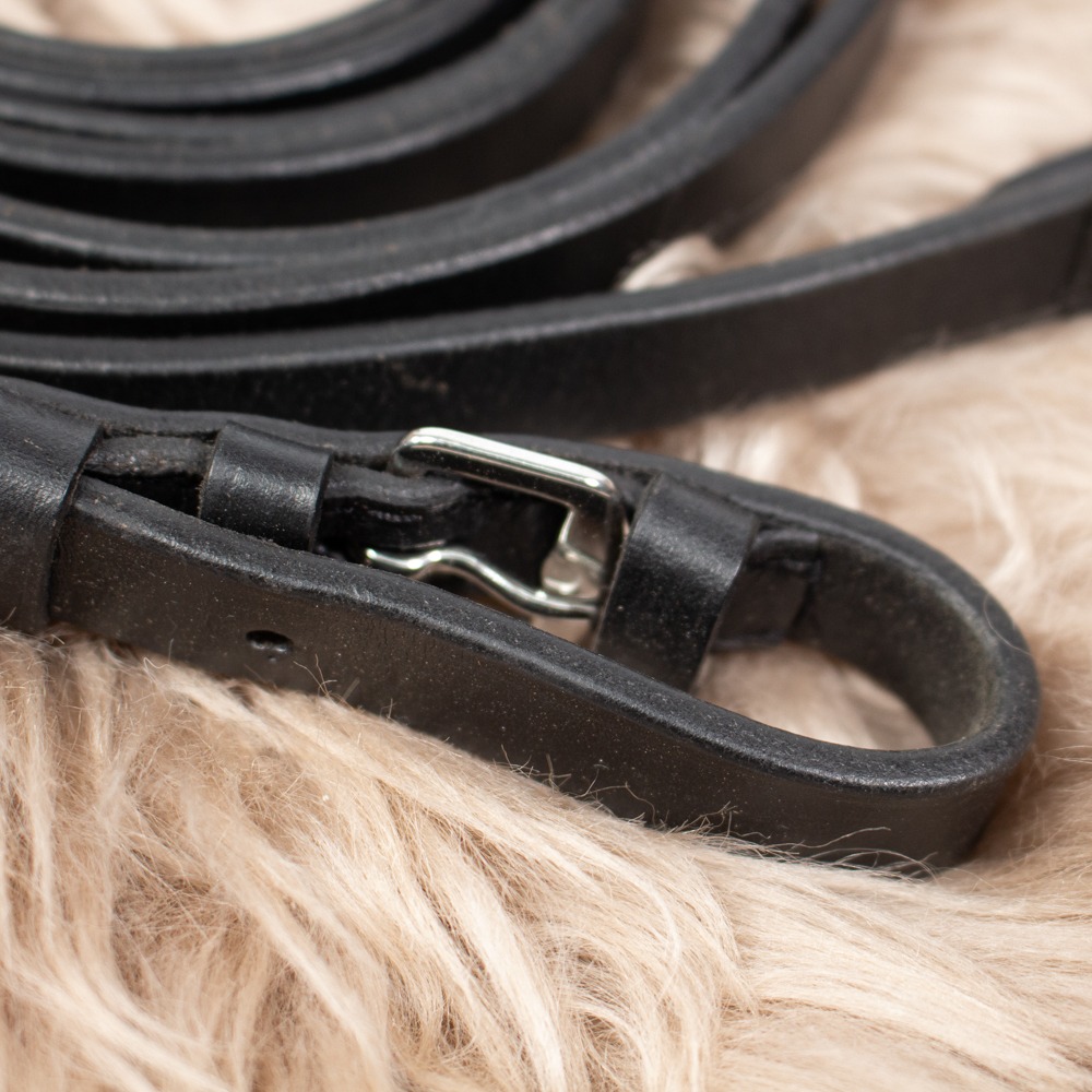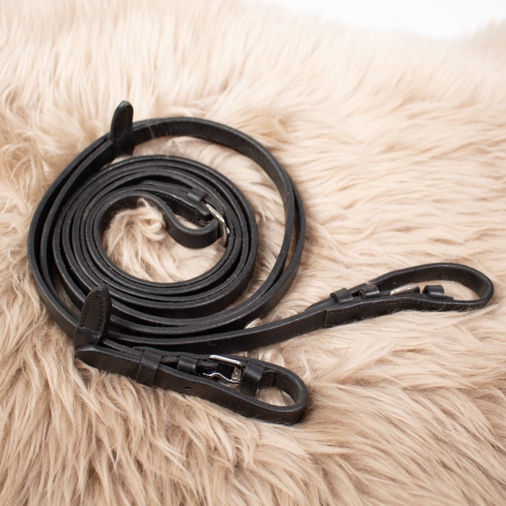 Die Lederzügel von Claridge House in schwarz bieten optimalen Halt und haben eine angenehme Dicke, die gut in der Hand liegt. Sie haben Größe Warmblut und silberne Beschläge. Die Zügel sind so gut wie neu.