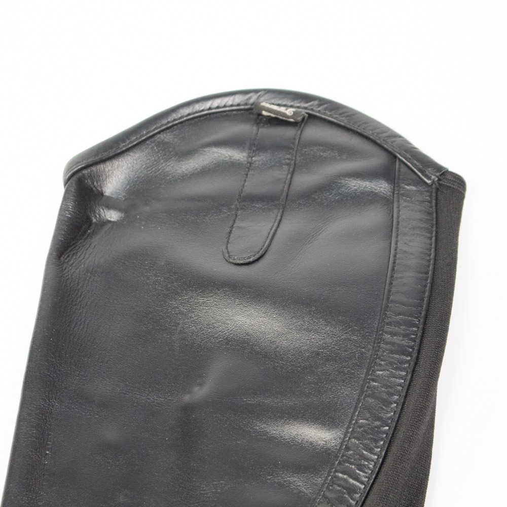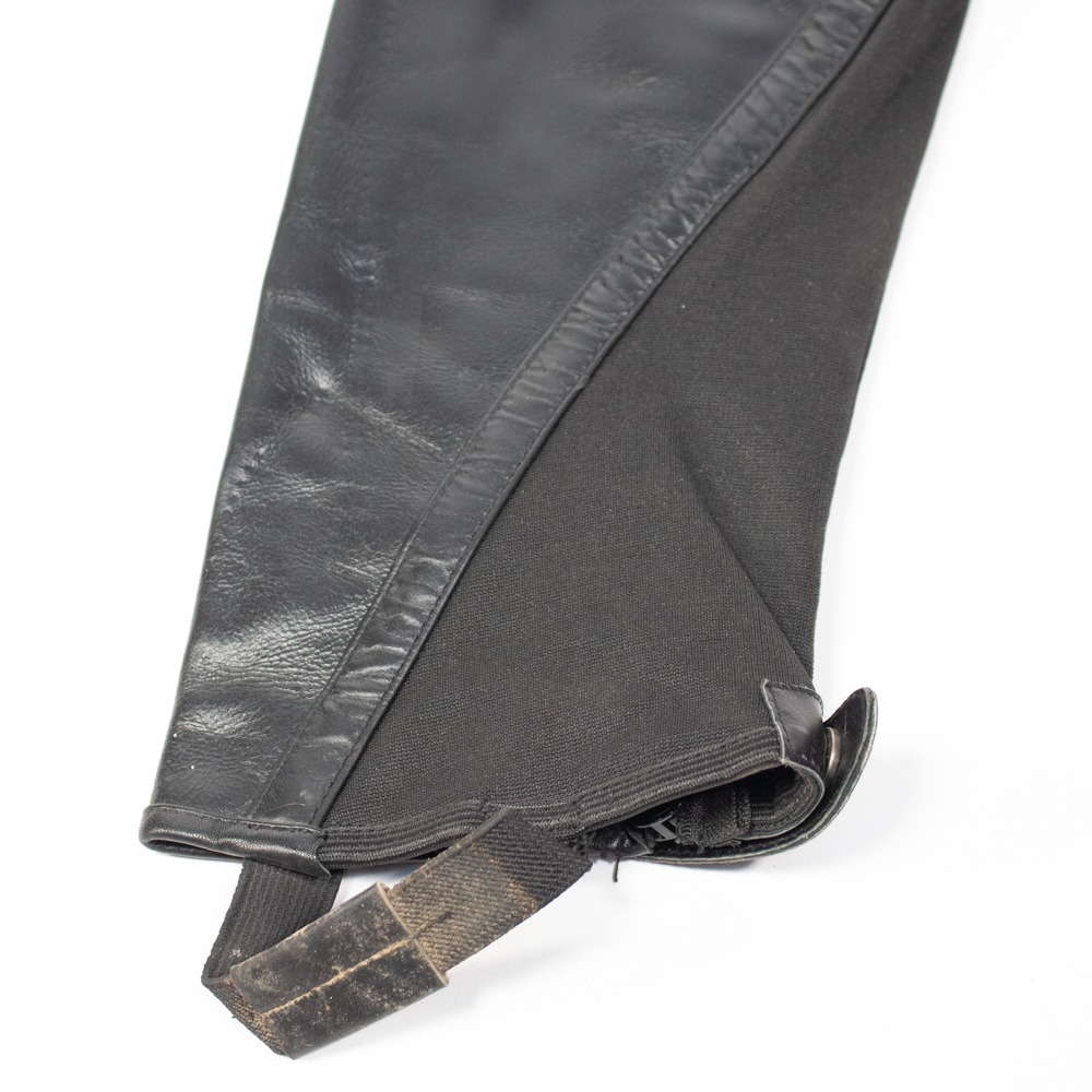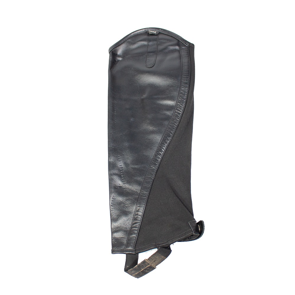 Die Chaps von ELT haben einen Reißverschluss, bestehen aus Leder und sind schwarz. Sie haben einen elastischen Sohlenriemen. Sie sind 42 cm hoch und 39-41 cm weit. Die Chaps haben leichte Gebrauchsspuren.