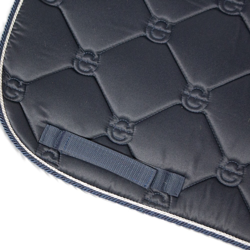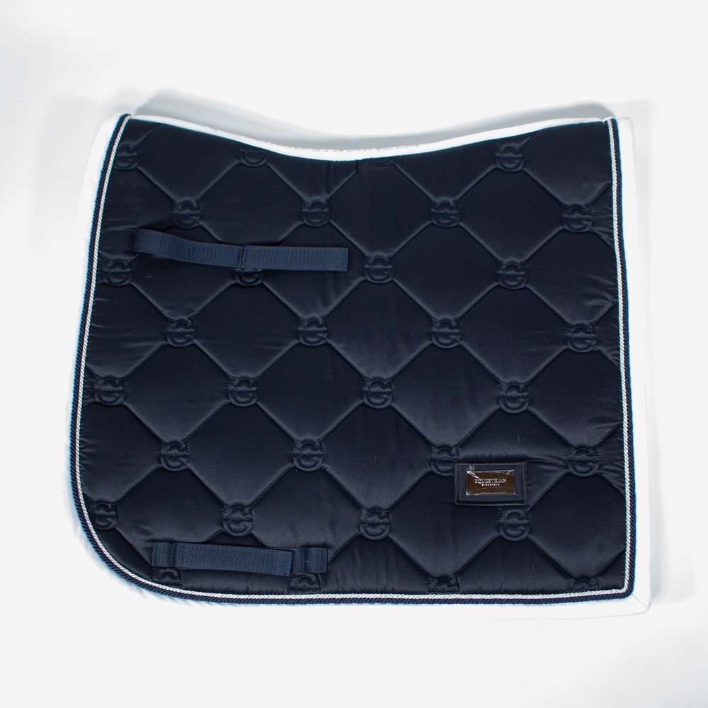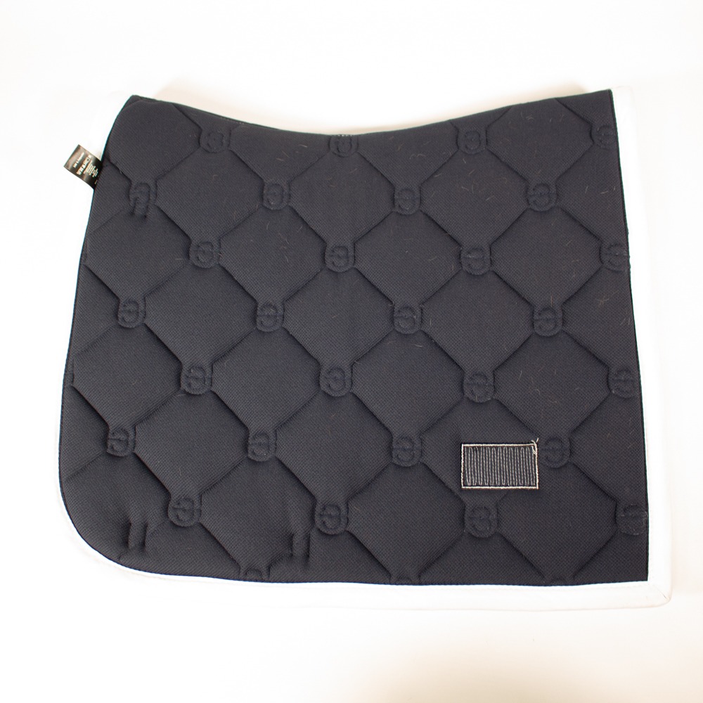 Die Schabracke von Equestrian Stockholm hat die Farbe navy und hat eine Mesh Unterseite. Die Schabracke hat Größe DR/WB. Sie hat leichte Gebrauchsspuren.