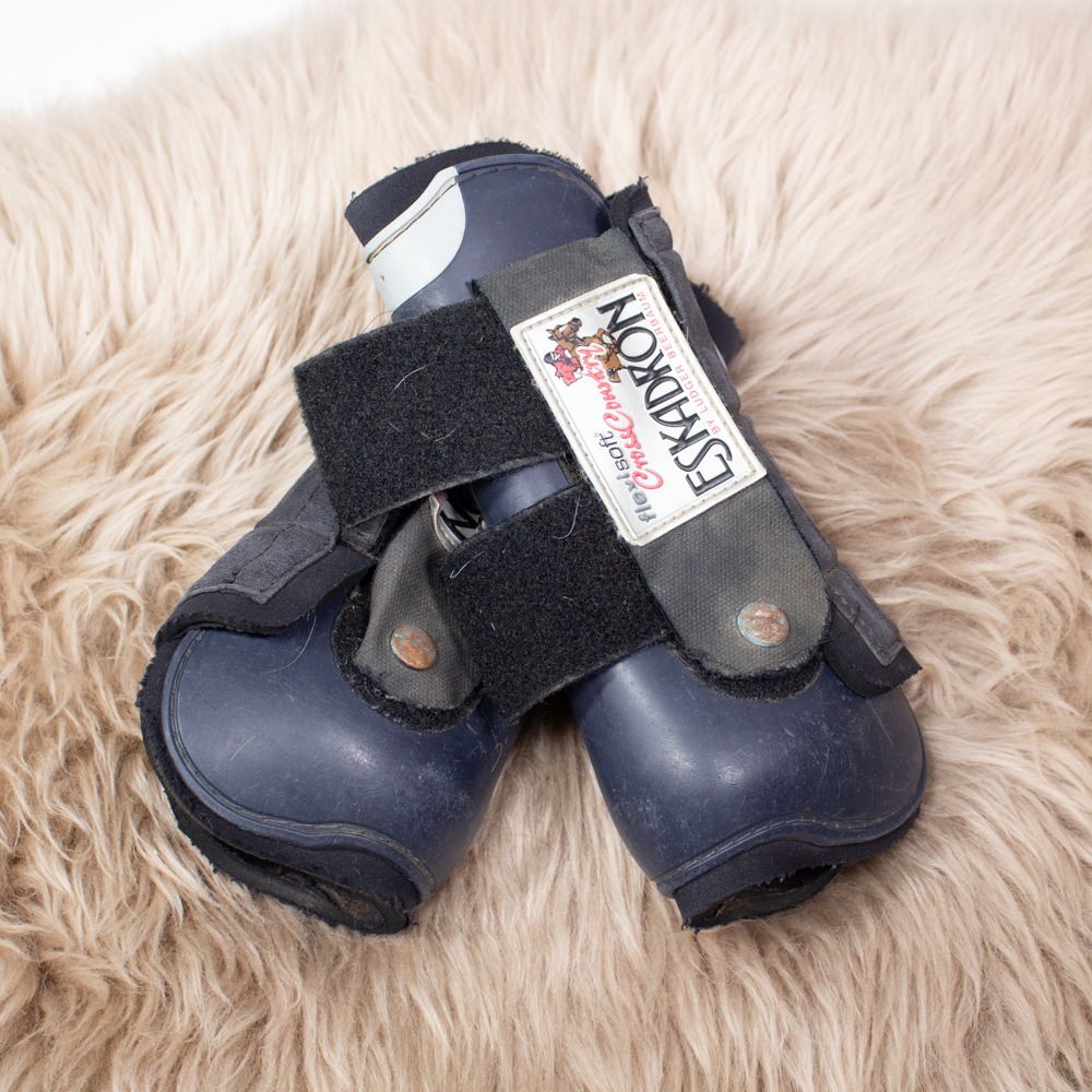 Die Gamaschen von Eskadron haben Größe Warmblut und sind dunkelblau. Das Innenfutter besteht aus Neopren. Die Gamaschen werden mit zwei Klettverschlüssen verschlossen. Sie kommen im 2er Set. Die Gamaschen haben Gebrauchsspuren.