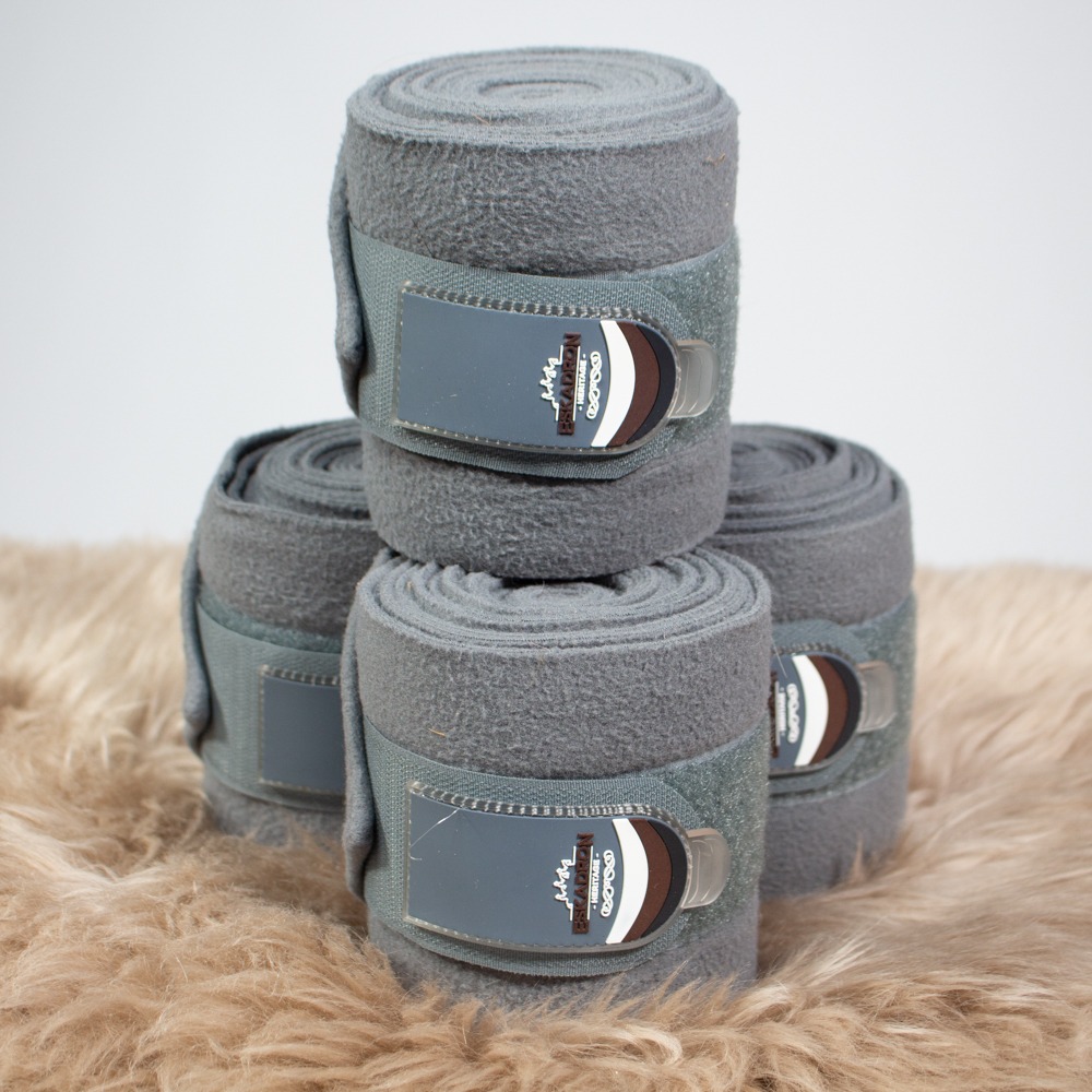 Die Bandagen von Eskadron in Größe Warmblut und der Farbe ashblue kommen im 4er Set und sind aus der Heritage Kollektion von Herbst/Winter 2018. Die Bandagen haben leichte Gebrauchsspuren.