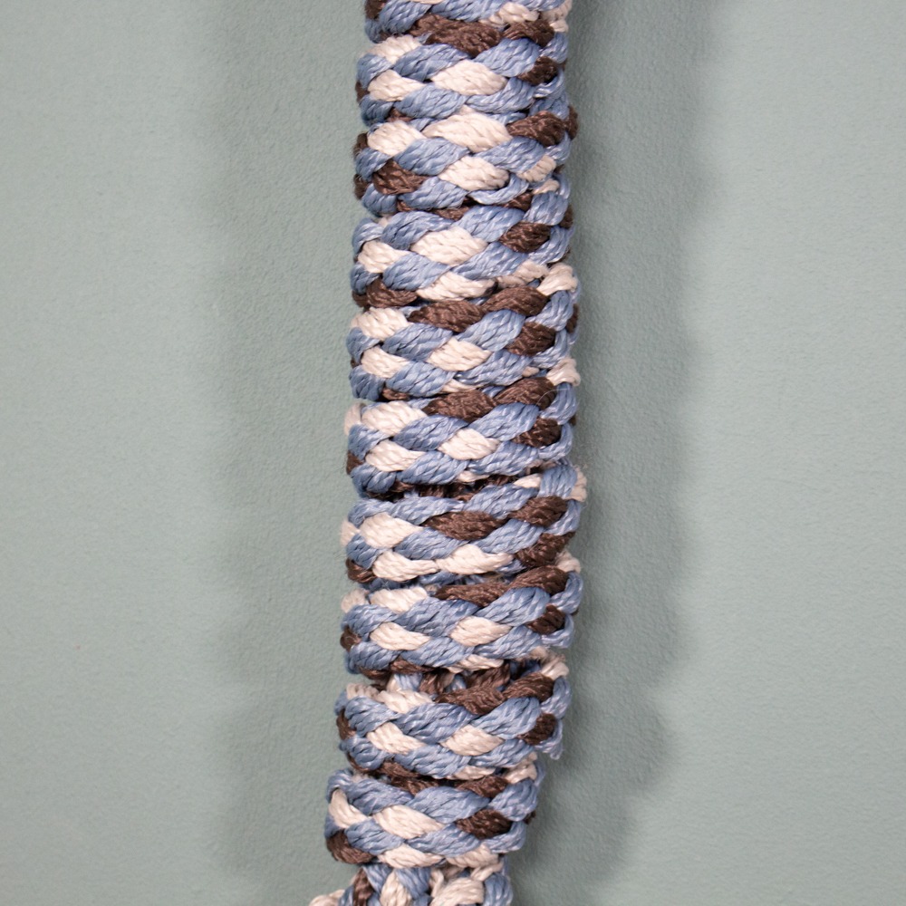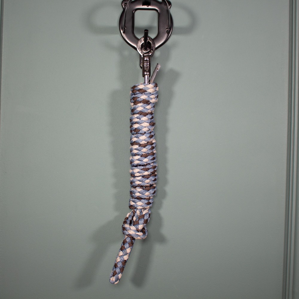 Der Führstrick von Eskadron hat einen dunklen Panikhaken und die Farbe vintageblue/greige/havanabrown. Der Führstrick ist aus der Platinum Kollektion von 2020. Er hat leichte Gebrauchsspuren.