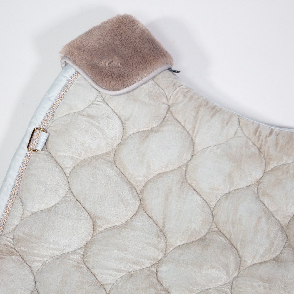 Die Schabracke von Eskadron hat die Farbe powder blue und eine große Steppung. Die Schabracke ist aus der Platinum Kollektion von 2023/24. Die Sattelstrupfen fehlen. Die Schabracke hat Gebrauchsspuren.