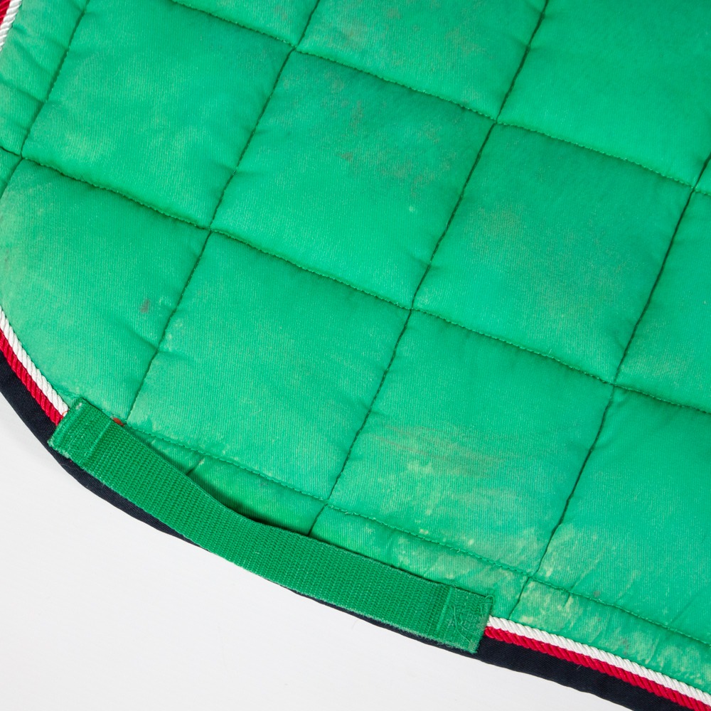 Die Schabracke von Eskadron hat die Farbe midgreen und hat eine große Steppung. Sie hat eine Waffel Unterseite. Die Big Square Schabracke ist aus der Classic Sports Kollektion von Frühjahr/Sommer 2017. Die Schabracke hat Gebrauchsspuren.