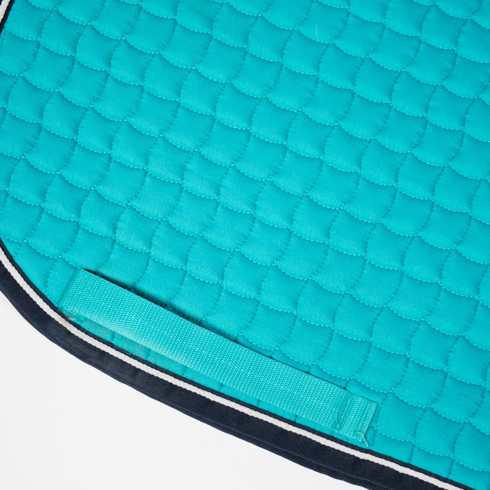 Die Schabracke von Eskadron hat die Farbe capri. Sie stammt aus einer Reitsport Klawunde Sonderkollektion. Die Schabracke hat leichte Gebrauchsspuren.