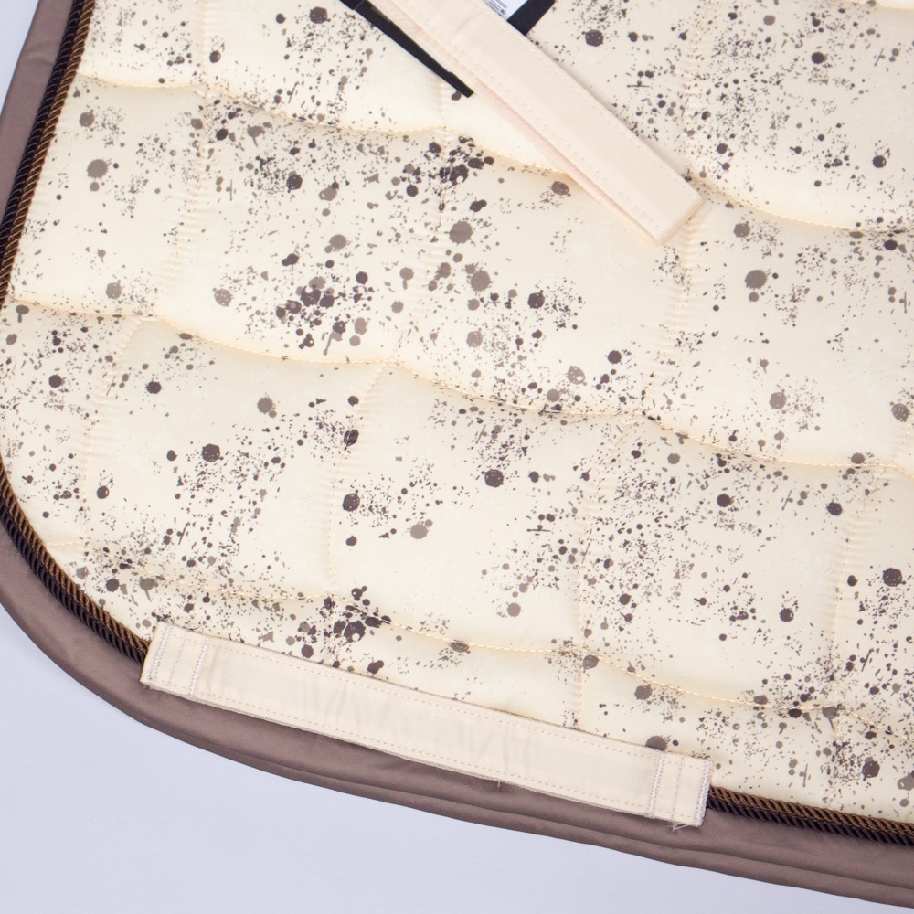 Die Schabracke von Eskadron hat eine große Steppung, die Farbe chocochip/browny, hat das beliebte Graffiti Muster, eine glänzende Oberfläche und eine Mesh Unterseite. Sie ist aus einer Reitsport Klawunde Sonderkollektion. Sie ist neu.
