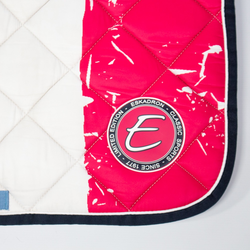 Die Schabracke von Eskadron hat eine große Steppung, die Farbe skyblue/white/freshberry. Sie hat eine Mesh Unterseite. Sie ist aus der Classic Sports Kollektion von Frühjahr/Sommer 2016. Die Schabracke hat leichte Gebrauchsspuren.