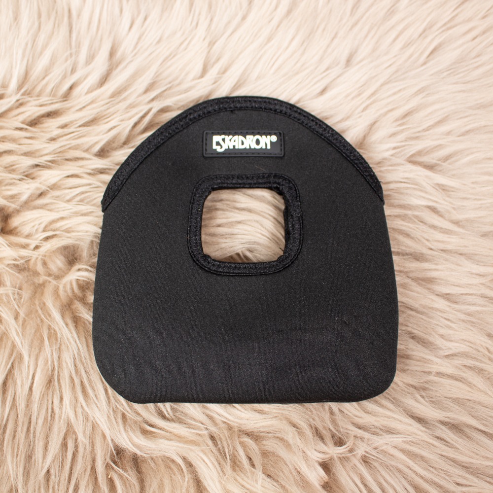 Die Steigbügelschoner von Eskadron sind aus Neopren gefertigt und schwarz. Die Schoner haben leichte Gebrauchsspuren.