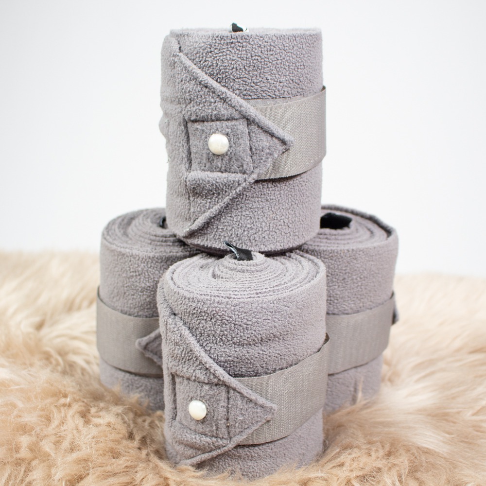 Die Bandagen von Euro Star haben Größe Warmblut und sind grau. Sie kommen im 4er Set. Die Bandagen haben Gebrauchsspuren.