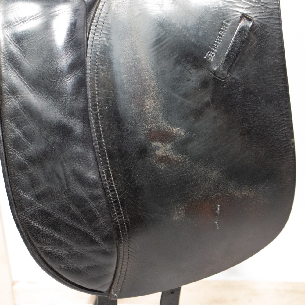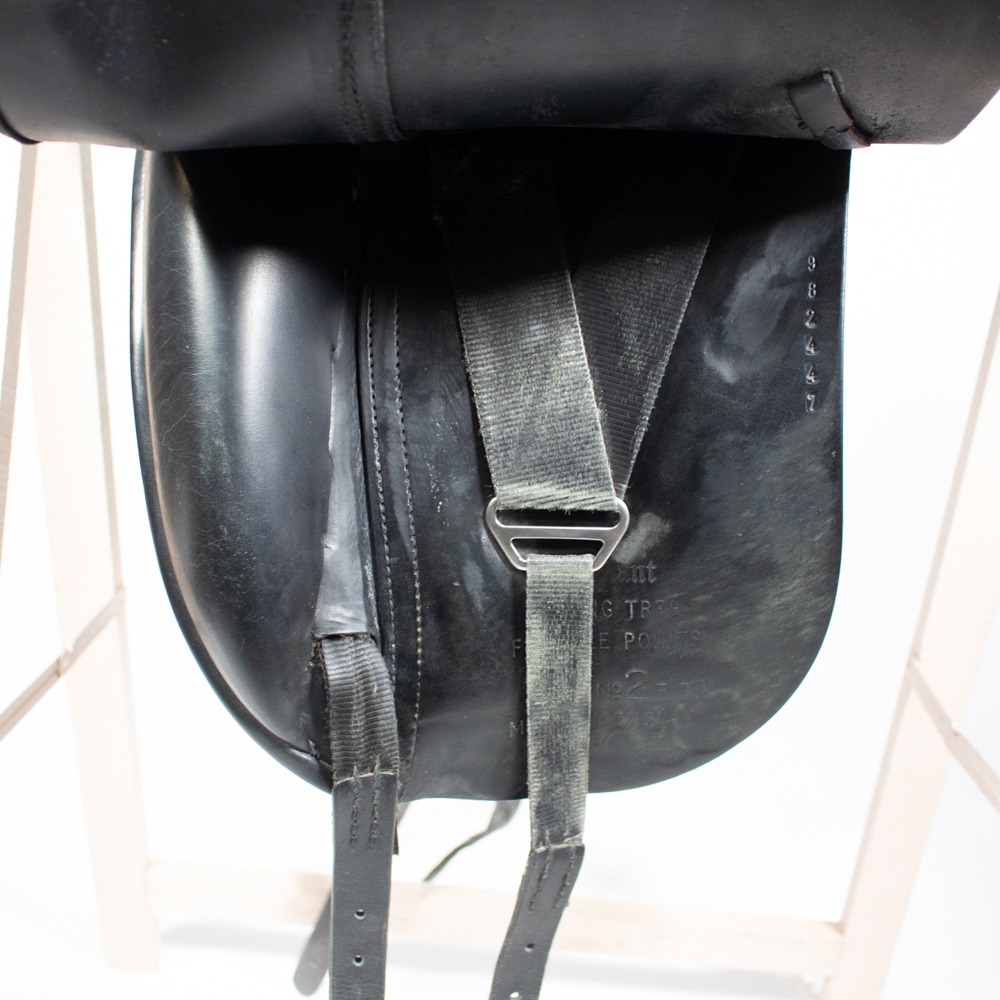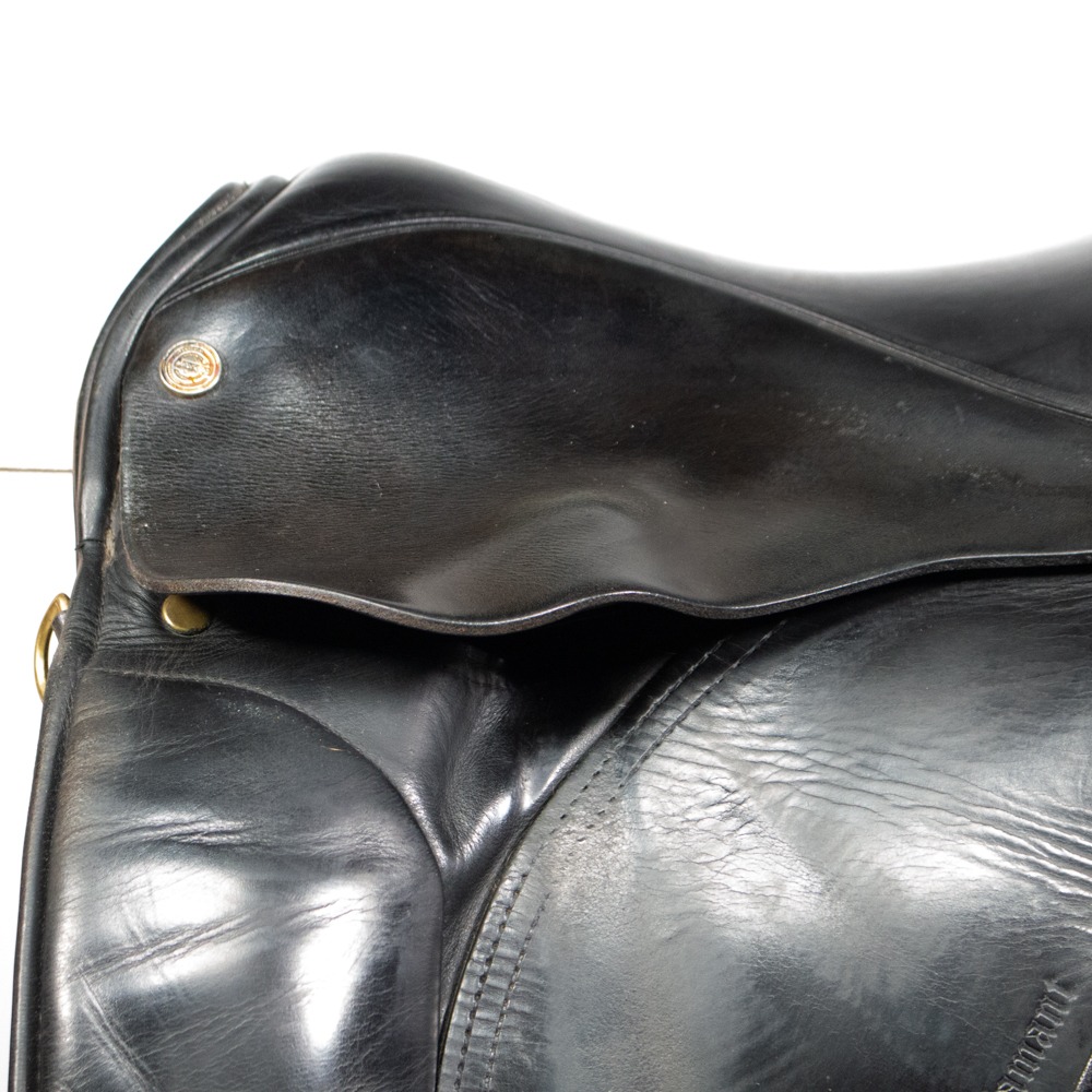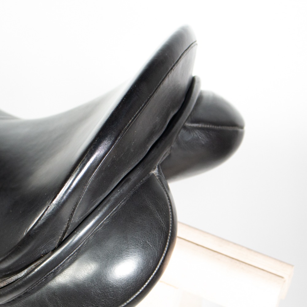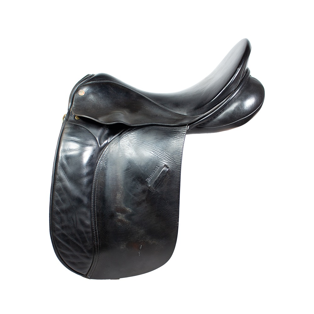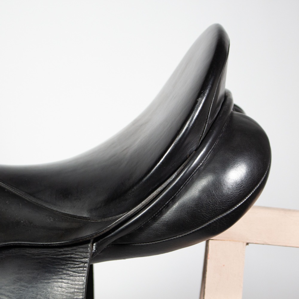 Der Dressursattel von Euroriding ist schwarz. Der Sattel hat 17 Zoll und eine Kammerweite von 27 cm. Er wird mit Sattelschoner geliefert. Der Sattel hat Gebrauchsspuren.