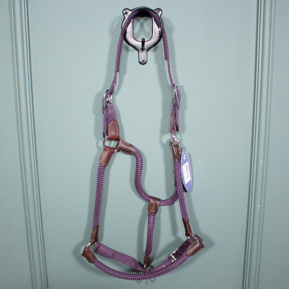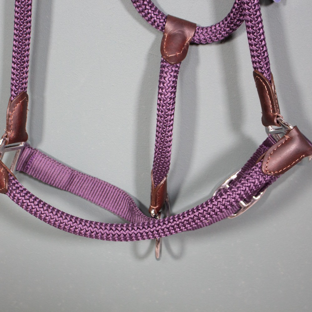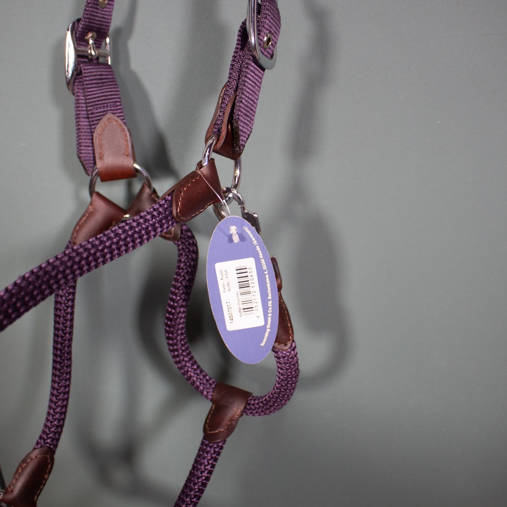Das Halfter von Euroriding ist verstellbar am Nasen- & Genickriemen. Es hat Größe XFull und die Farbe purple. Das Halfter ist neu.