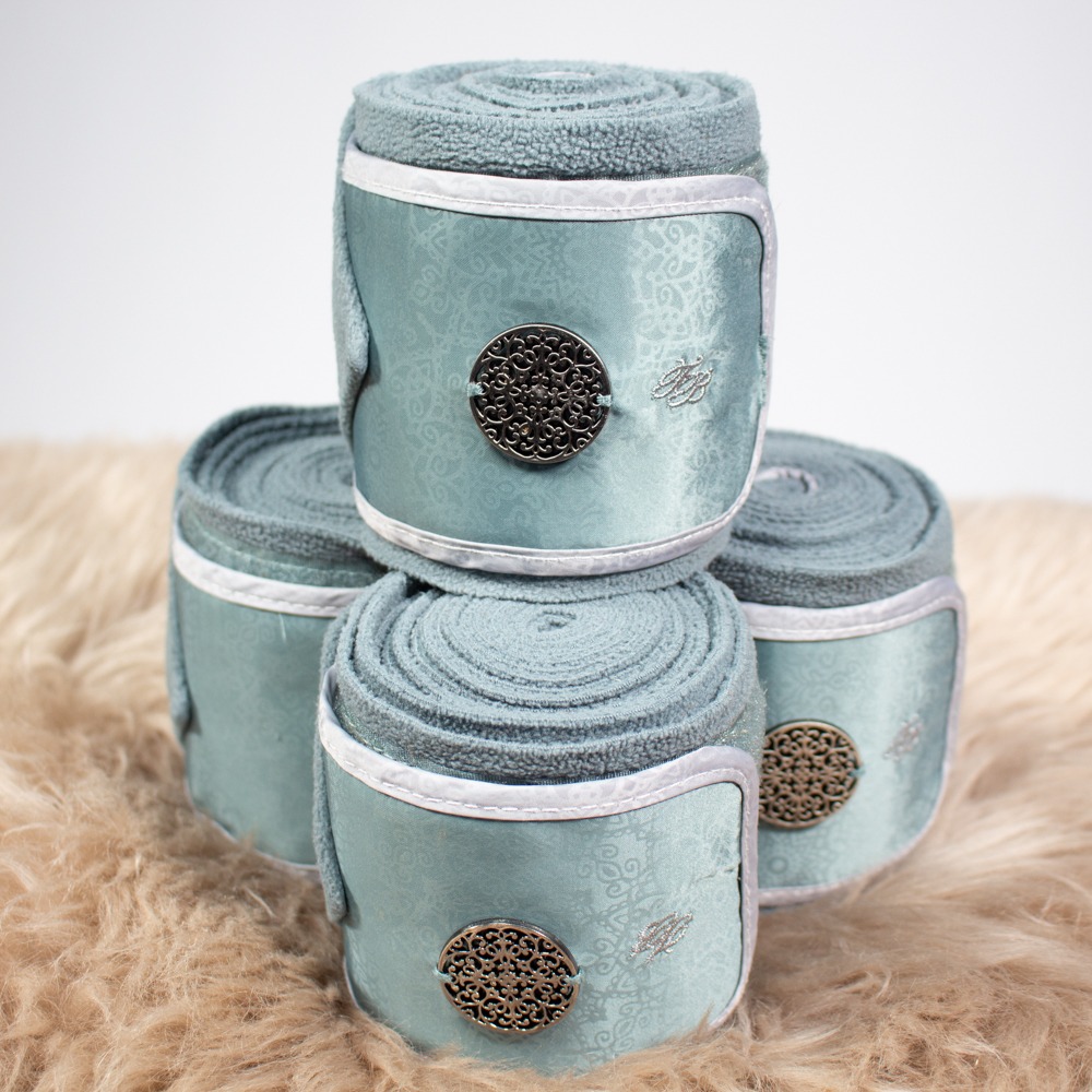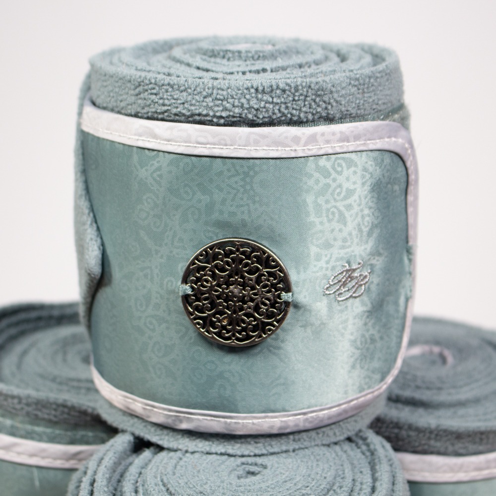Die Bandagen von Felix Bühler haben Größe Warmblut und sind grün. Sie kommen im 4er Set. Die Bandagen haben leichte Gebrauchsspuren.
