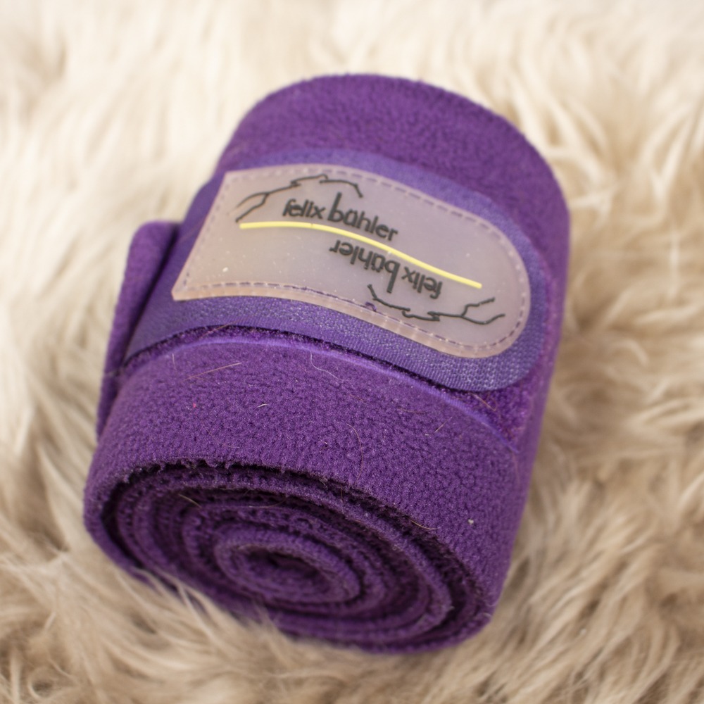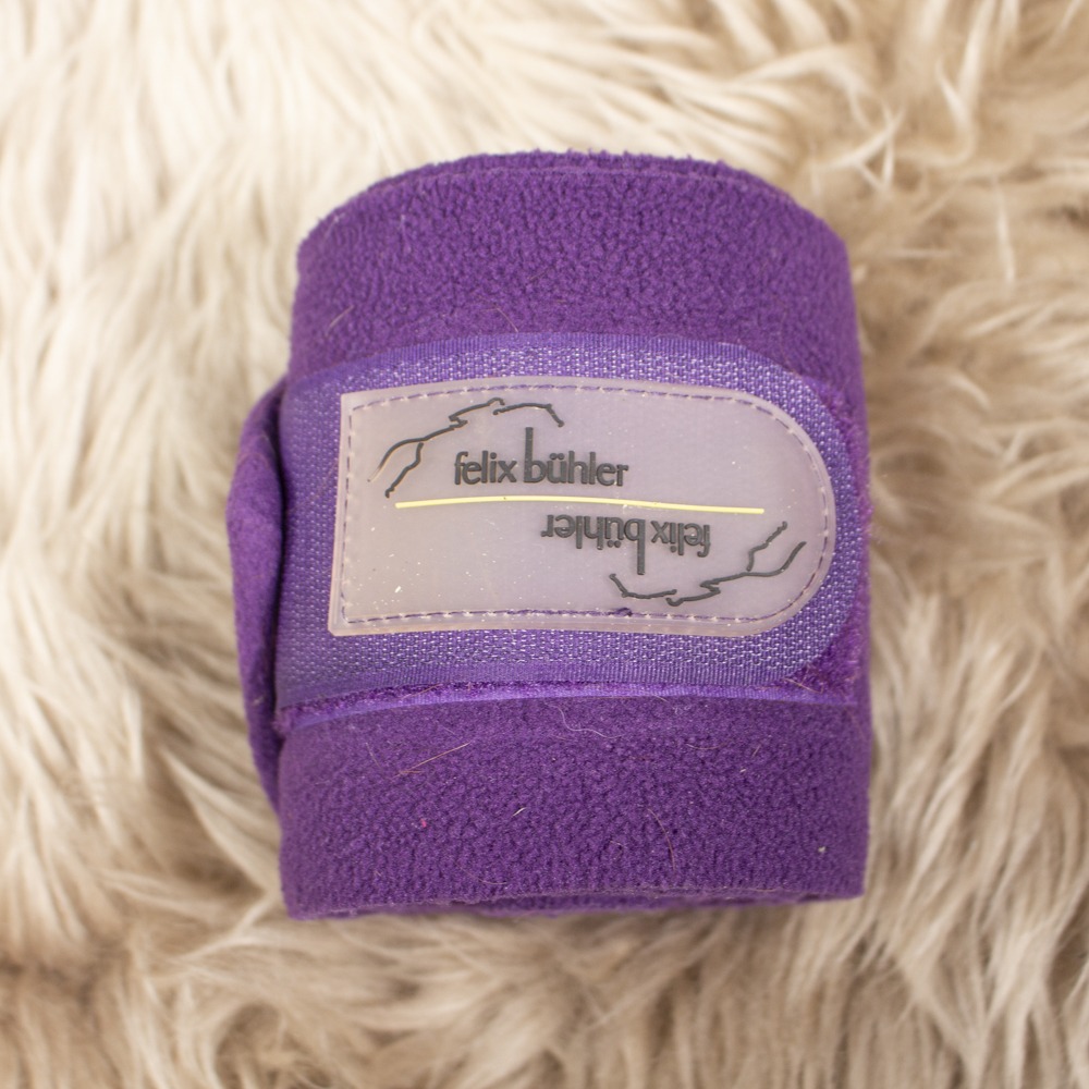Die Bandagen von Felix Bühler haben Größe Warmblut, sind lila und kommen im 4er Set. Die Bandagen haben leichte Gebrauchsspuren.