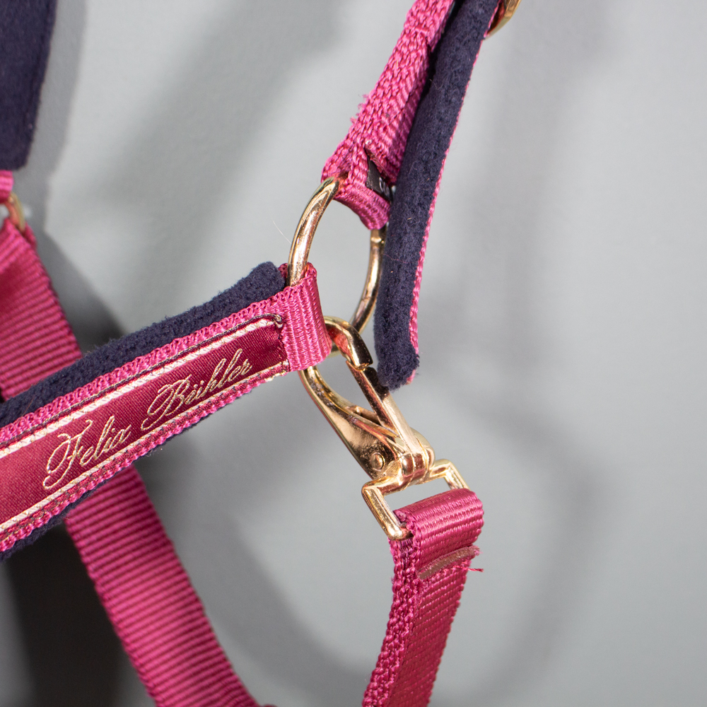 Das Halfter von Felix Bühler ist rot und hat Größe COB. Es hat leichte Gebrauchsspuren.