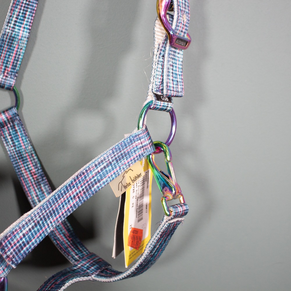 Das Halfter von Felix Bühler ist bunt und hat Größe COB. Es ist neu.