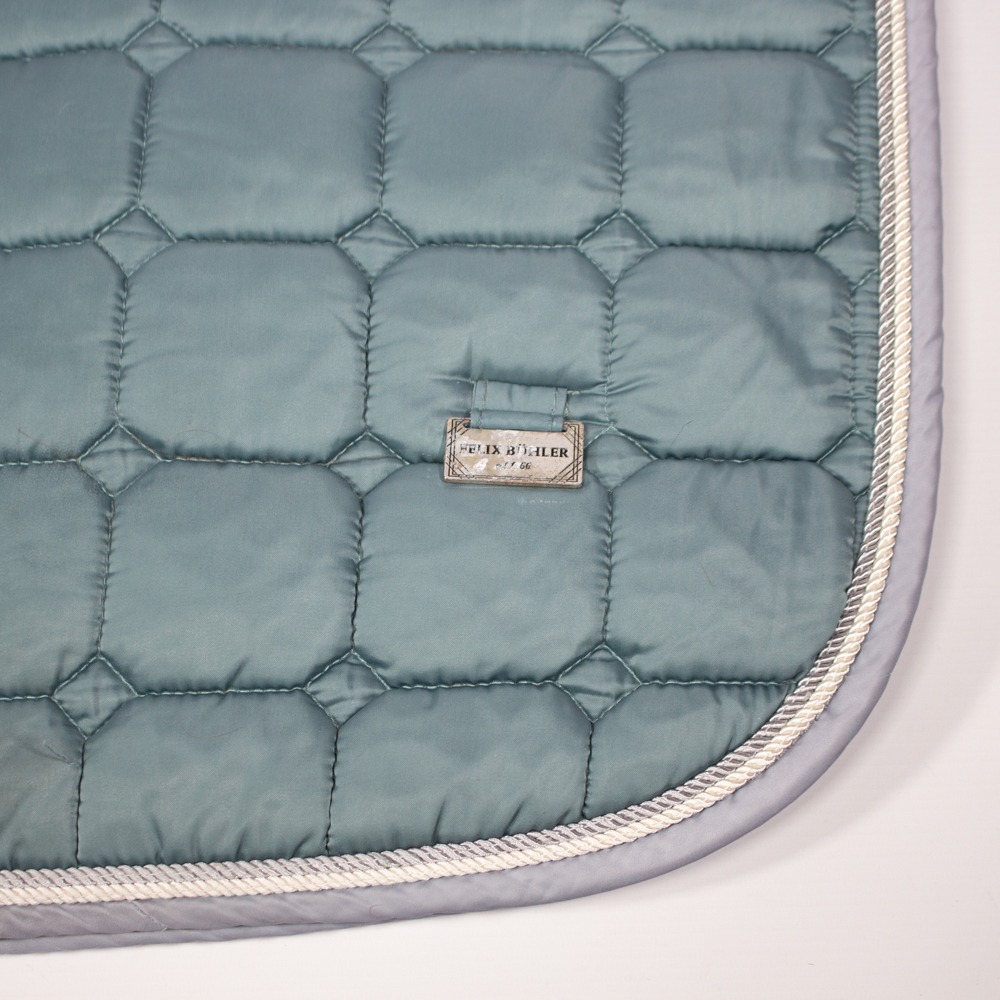 Die Schabracke von Felix Bühler ist hellblau und hat eine mittlere Steppung. Sie hat eine Mesh Unterseite. Die Schabracke hat Gebrauchsspuren.