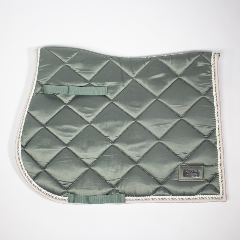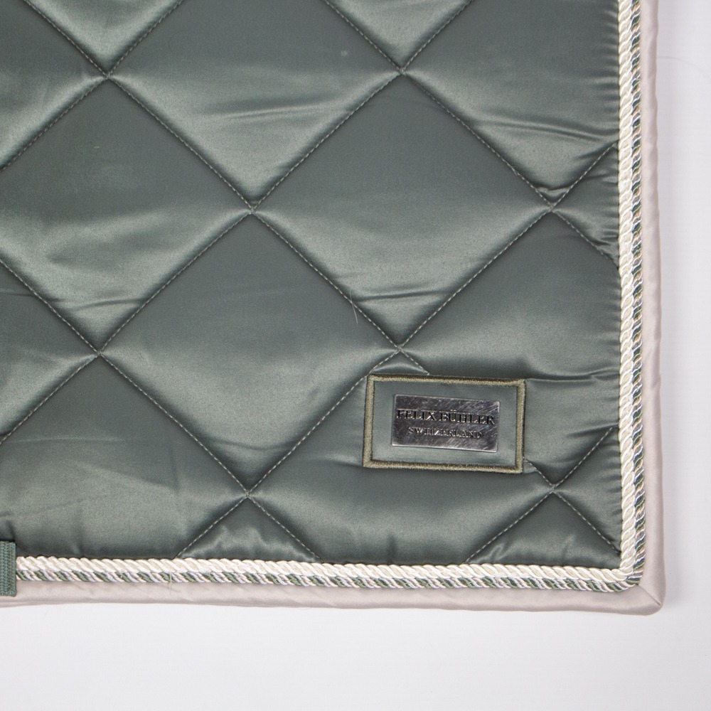 Die Schabracke von Felix Bühler ist grün und hat eine Mesh Unterseite. Die Schabracke hat leichte Gebrauchsspuren.