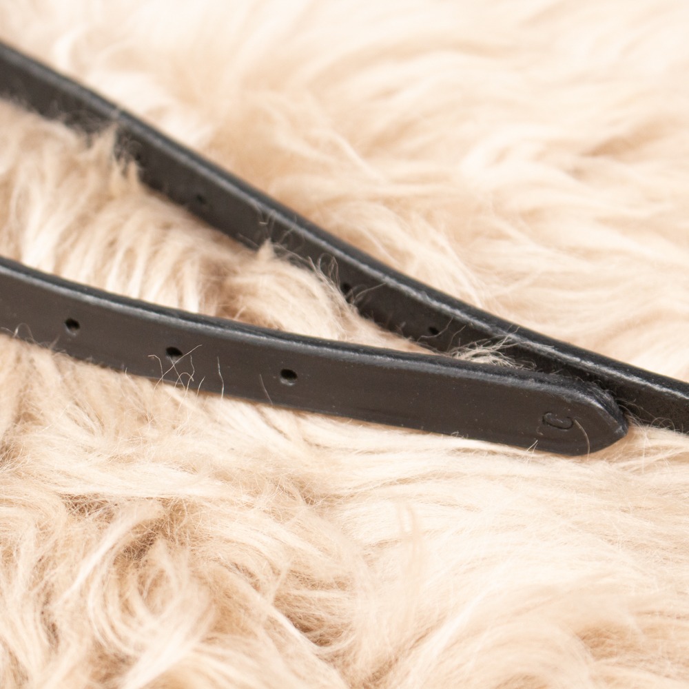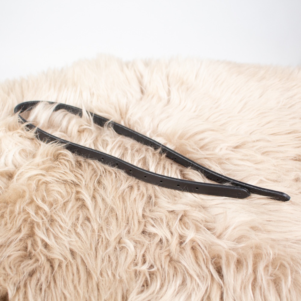 Der Genickriemen ist aus schwarzem Leder gefertigt und hat Größe COB. Der Riemen ist so gut wie neu.