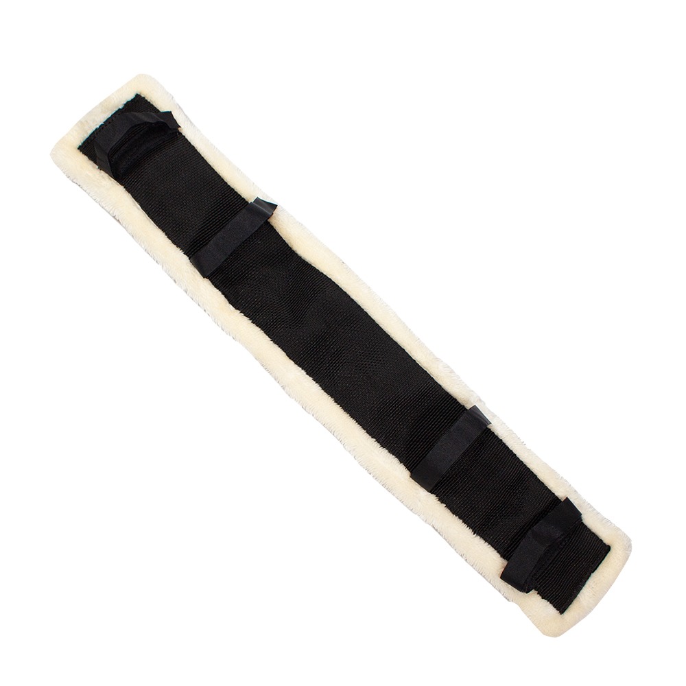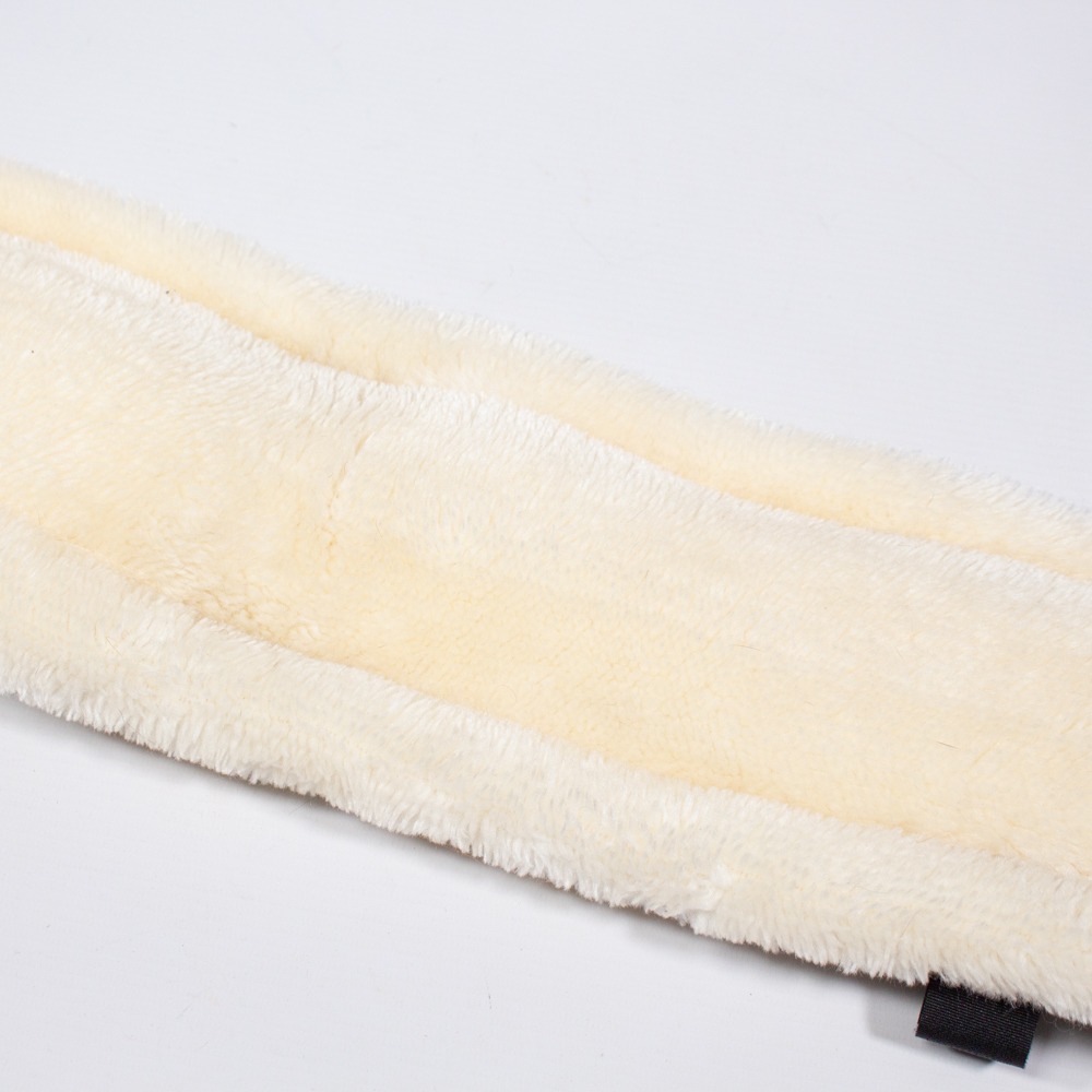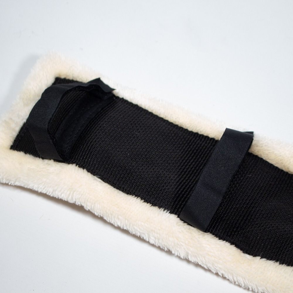Der Gurtschoner besteht aus Kunstfell und ist schwarz. Er hat leichte Gebrauchsspuren.