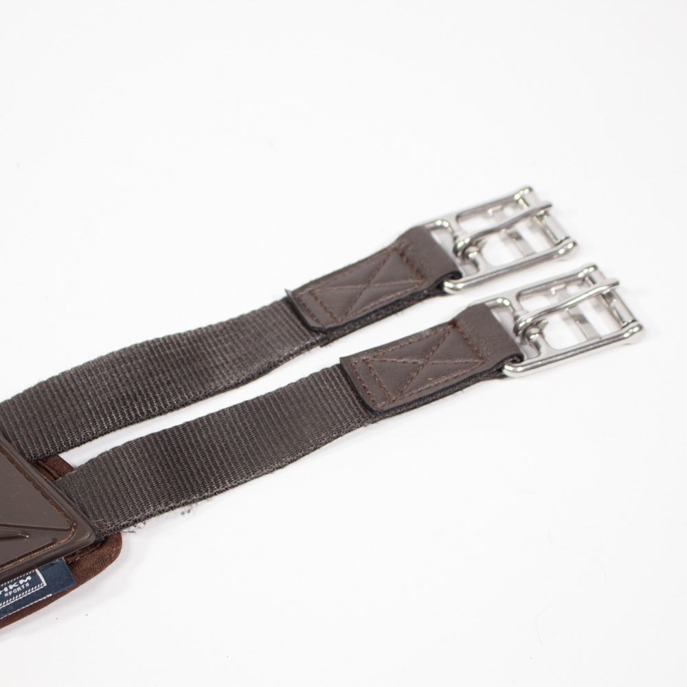 Der Leder Sattelgurt von HKM ist braun und hat Größe 130 cm. Er hat einseitige Elastikeinsätze. Der Sattelgurt hat leichte Gebrauchsspuren.