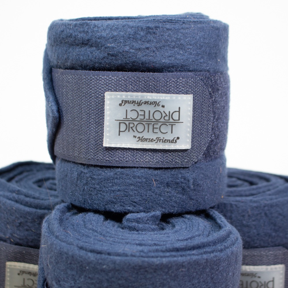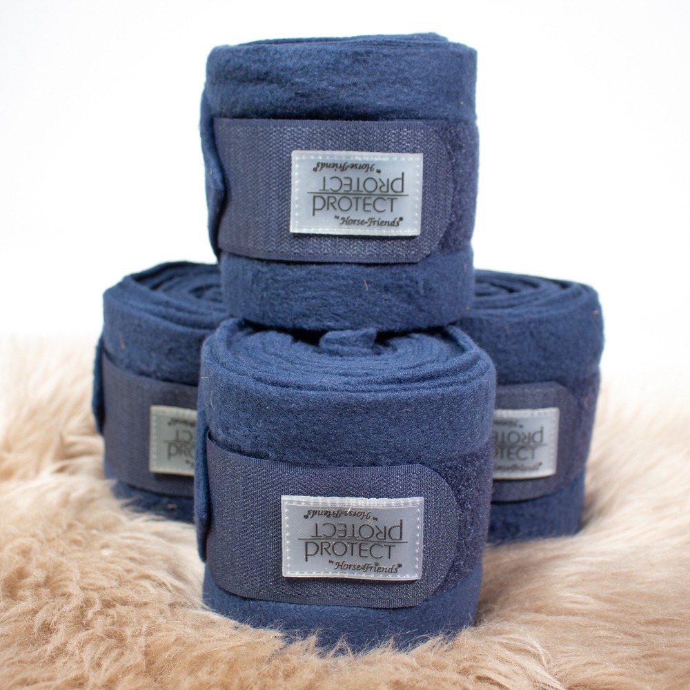 Die Bandagen von Loesdau in Größe Warmblut sind circa 3,5 m lang und kommen im 4er Set. Sie sind dunkelblau. Die Bandagen haben leichte Gebrauchsspuren.