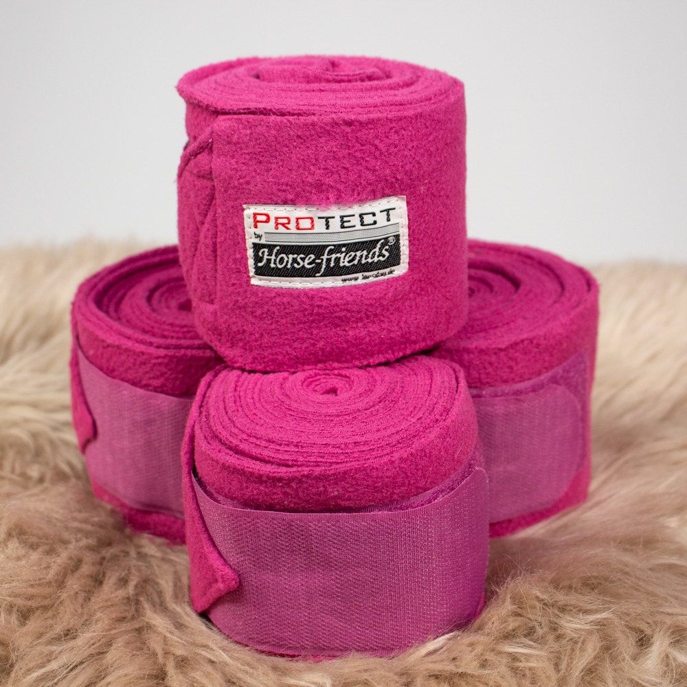Die Bandagen von Loesdau in Größe Pony sind lila und kommen im 4er Set. Die Bandagen haben leichte Gebrauchsspuren.