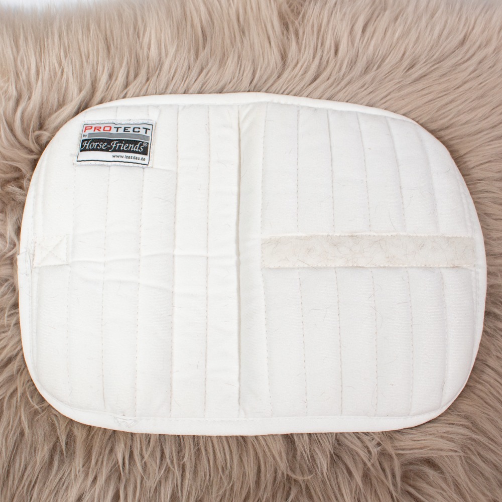 Die Bandagierunterlagen von Protect by Horse-Friends sind 30 x 45 cm groß und kommen im 4er Set. Sie haben einen Klettverschluss und sind weiß. Die Unterlagen haben leichte Gebrauchsspuren.