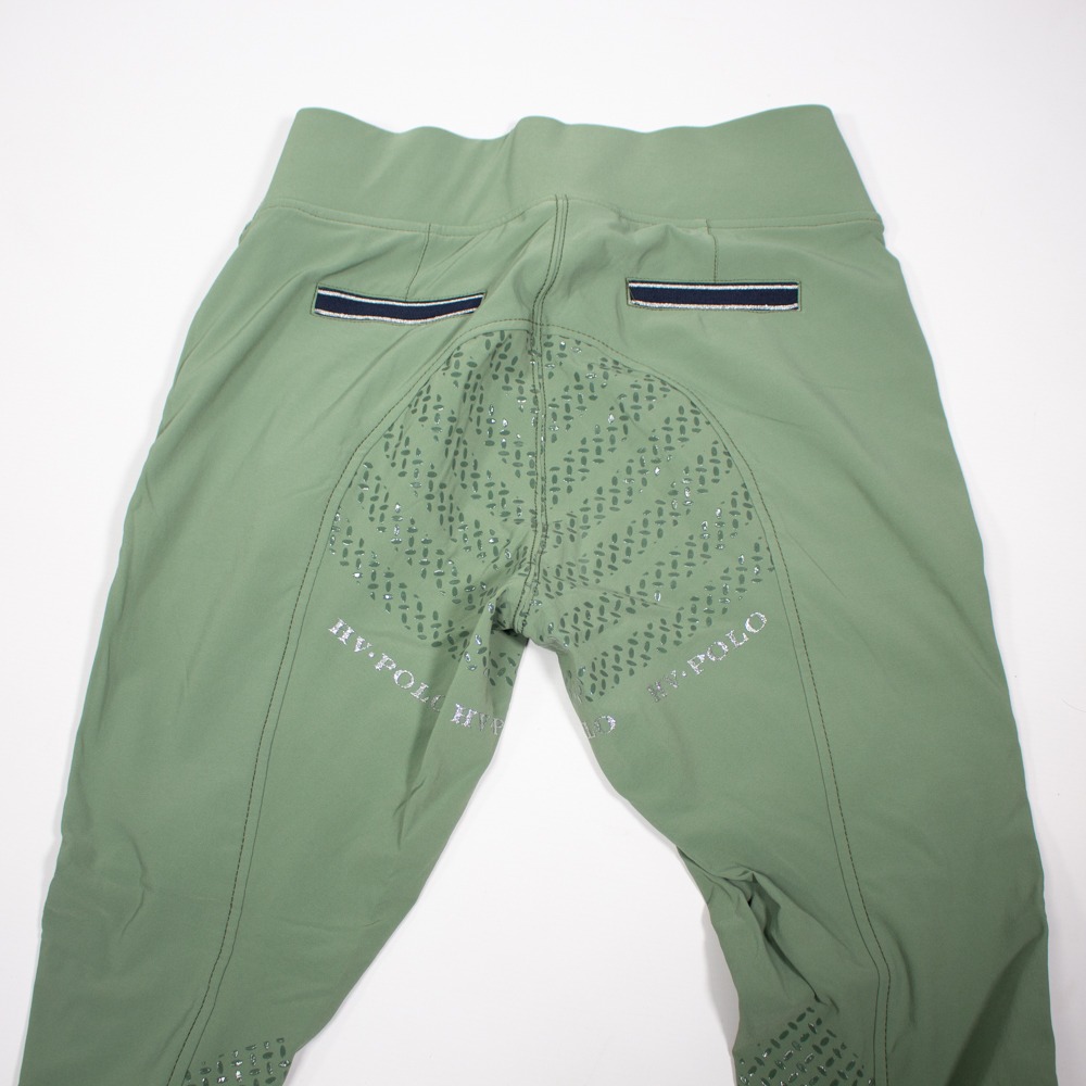 Die Reitleggings von HV Polo ist grün und hat Größe 40. Die Hose hat einen Silikonvollbesatz. Die Hose hat leichte Gebrauchsspuren.