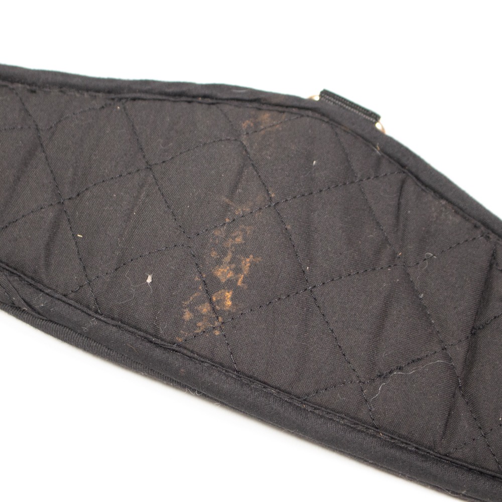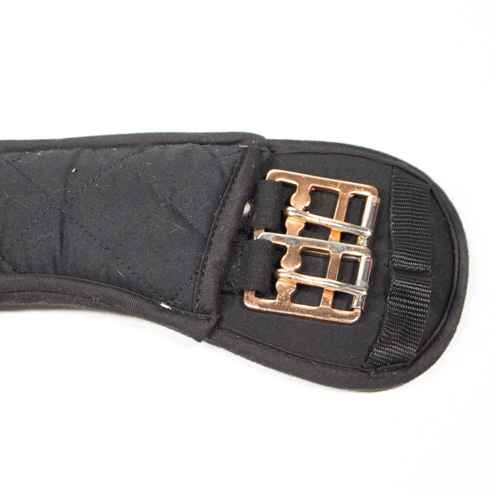 Der Sattelgurt von Imperial Riding ist 60 cm lang und hat beidseitige Elastikeinsätze. Der Sattelgurt hat Gebrauchsspuren.