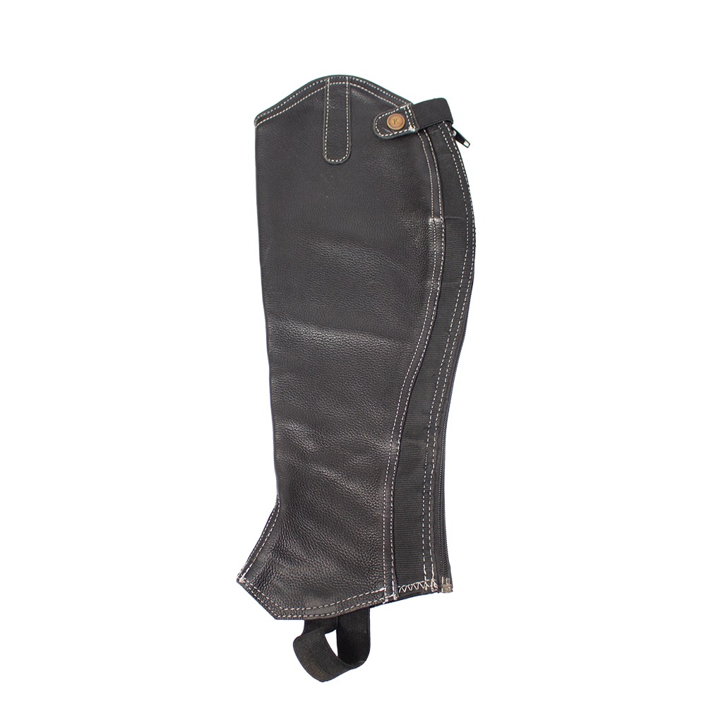 Die Chaps von Kavalkade haben einen Reißverschluss und sind schwarz. Sie haben einen elastischen Sohlenriemen. Sie sind 49 cm hoch und 41 cm weit. Die Chaps haben leichte Gebrauchsspuren.