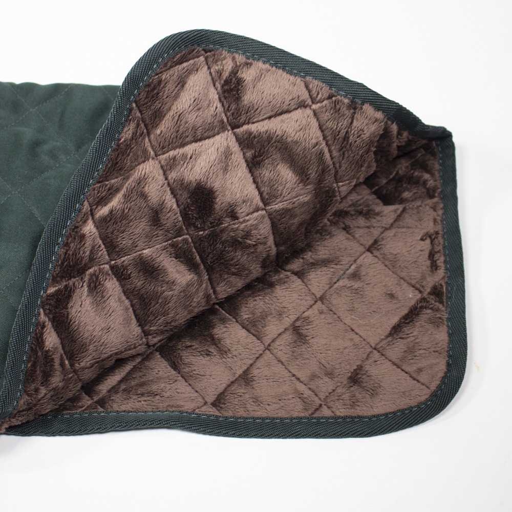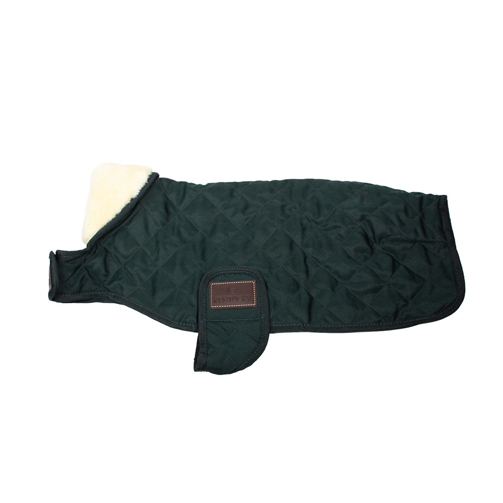 Der Hundemantel von Kentucky ist dunkelgrün und hat Größe L. Er hat damit eine Rückenlänge von 56 cm und hat eine 160g Füllung. Der Mantel ist neu.
