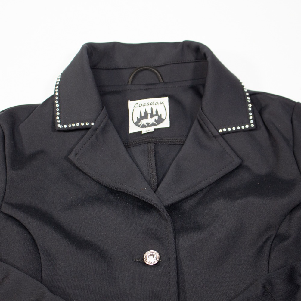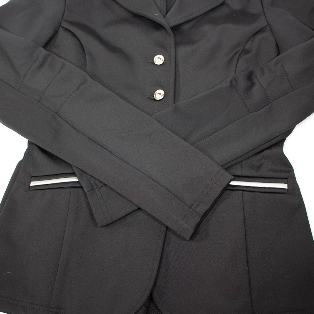 Das Turnierjacket von Loesdau ist schwarz und hat Größe 34. Das Jacket ist hat leichte Gebrauchsspuren.