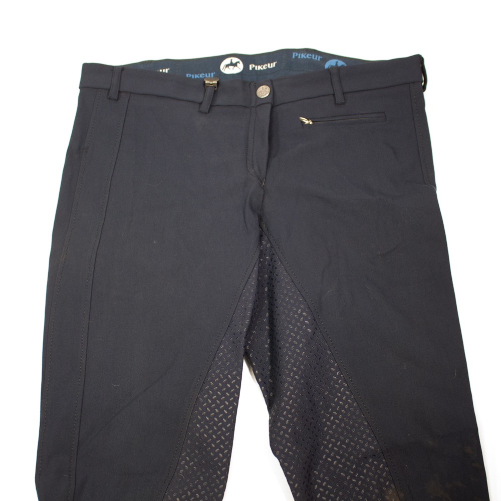 Die Reithose von Pikeur ist dunkelblau und hat Größe 40. Die Hose hat einen Silikonvollbesatz. Die Hose hat Gebrauchsspuren.