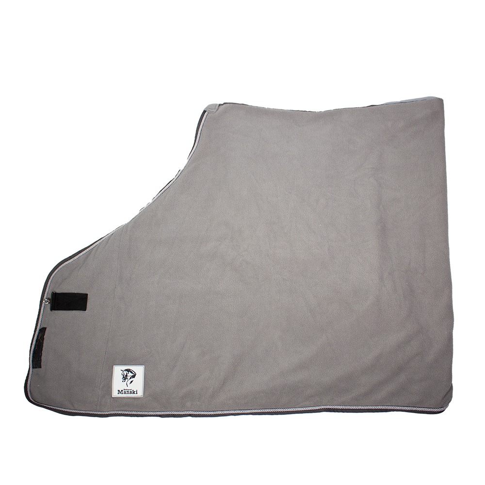 Die Abschwitzdecke von Reitsport Manski hat eine Rückenlänge von 145 cm. Sie hat ein Widerristpolster und einen Schweifriemen. Die Abschwitzdecke hat leichte Gebrauchsspuren.