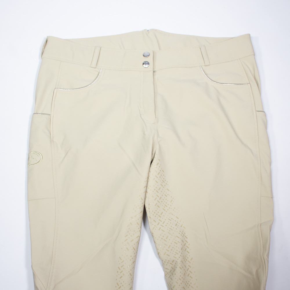 Die Reithose von Riderschoice ist beige und hat Größe 48. Die Hose hat einen Silikonvollbesatz. Die Hose ist neu.