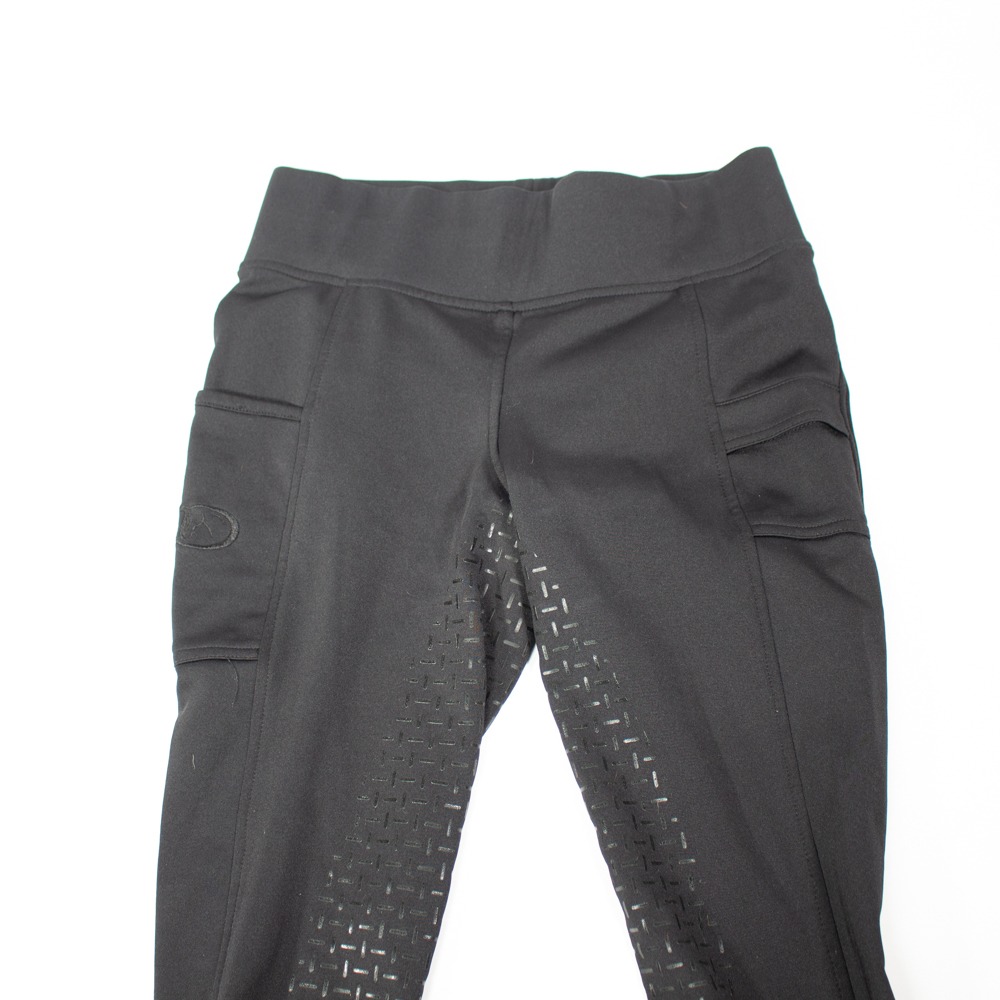 Die Riderschoice Reitleggings ist schwarz und hat Größe 42. Die Hose hat einen Silikonvollbesatz. Die Hose hat leichte Gebrauchsspuren.