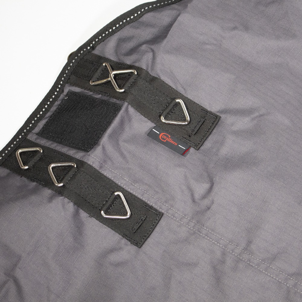 Die Outdoordecke von Covalliero hat eine Rückenlänge von 145 cm und eine 0g Füllung. Sie hat eine Kreuzbegurtung, Beingurte und einen Schweiflatz. Die Decke ist so gut wie neu.