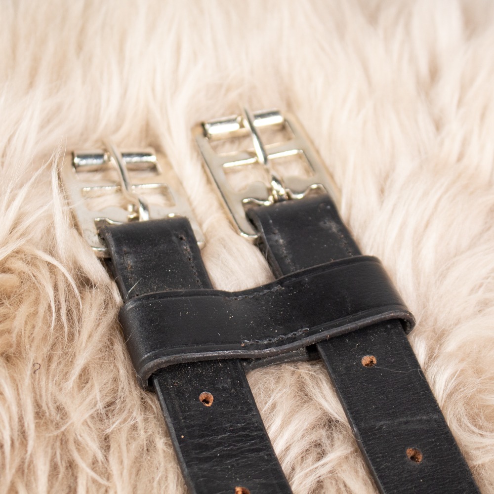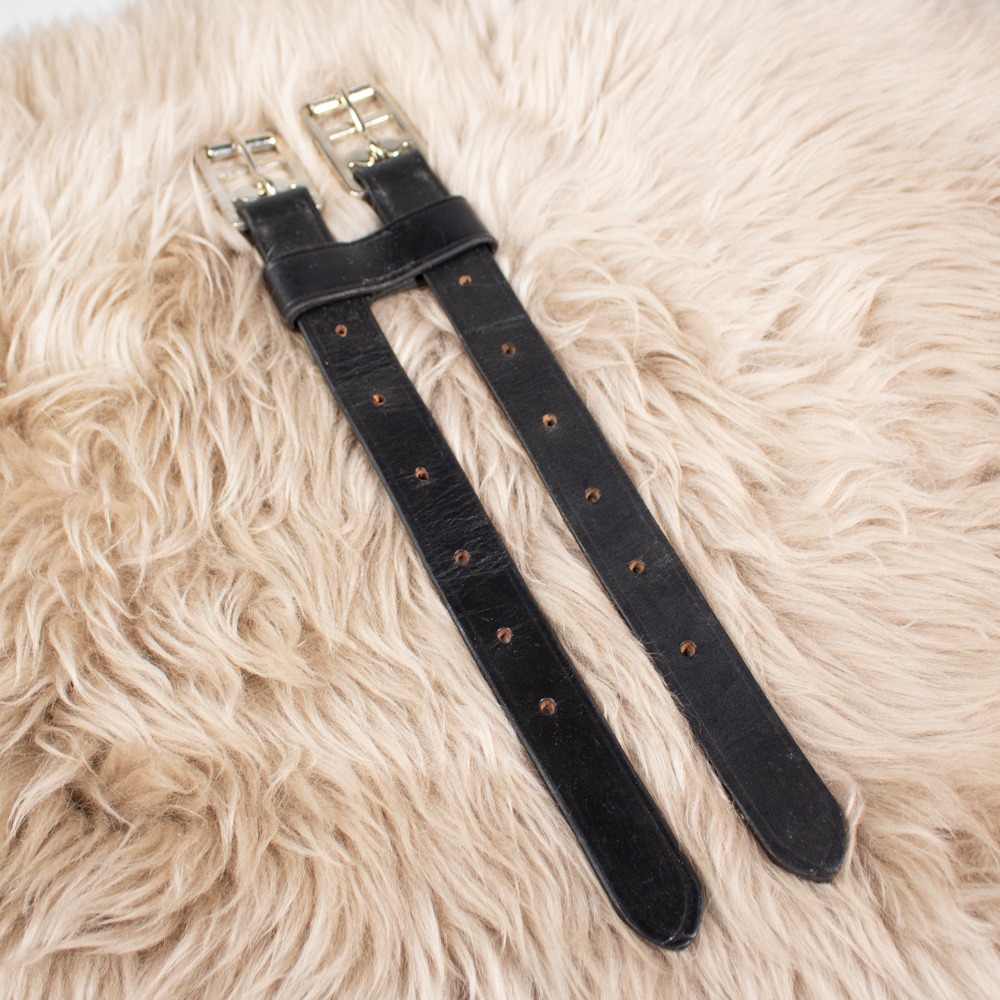 Die Sattelgurt Verlängerung ist schwarz und hat eine Einheitsgröße. Sie hat leichte Gebrauchsspuren.