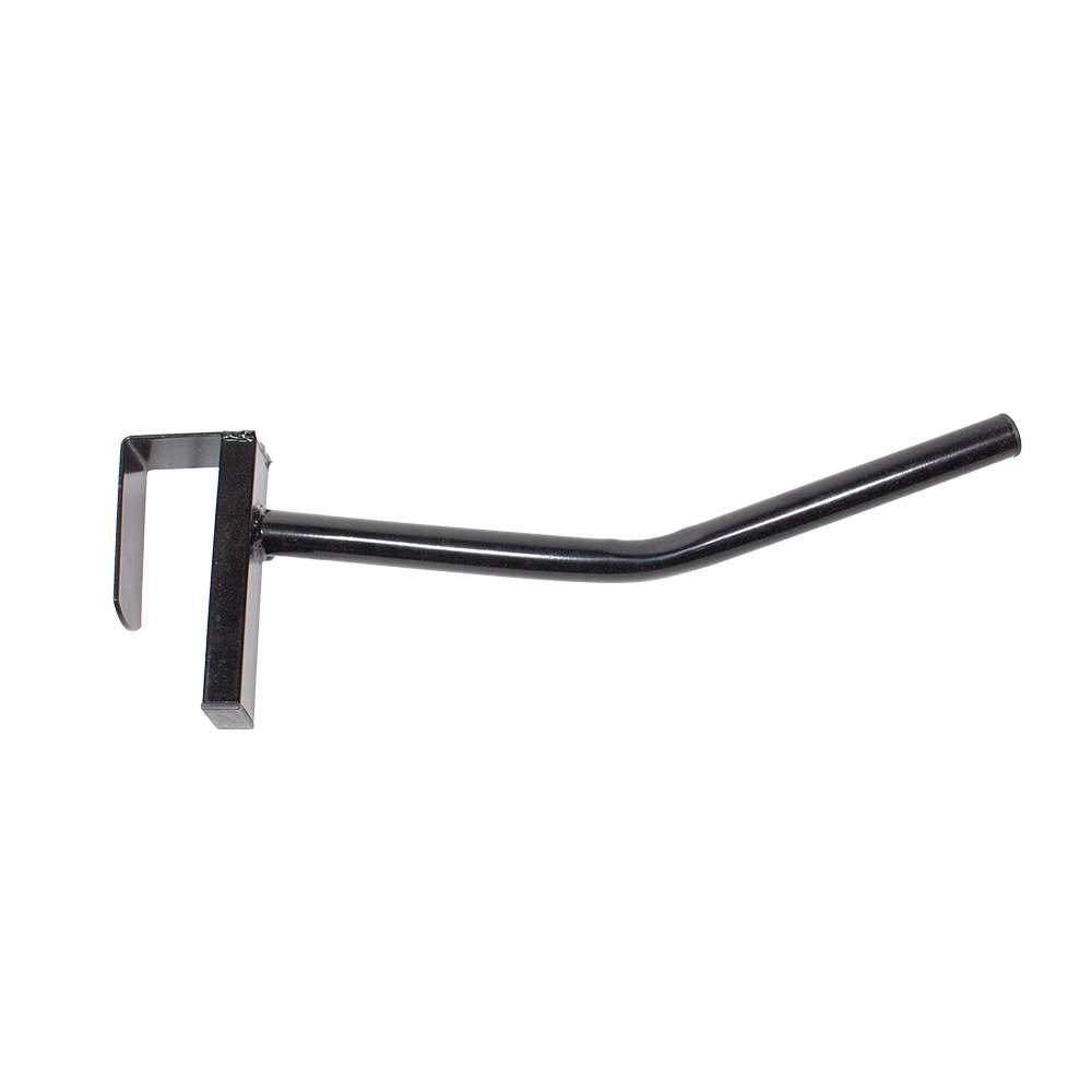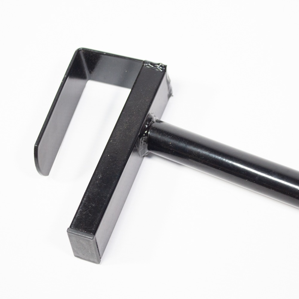 Der Sattelhalter ist schwarz und aus Metall. Der Halter hat leichte Gebrauchsspuren.
