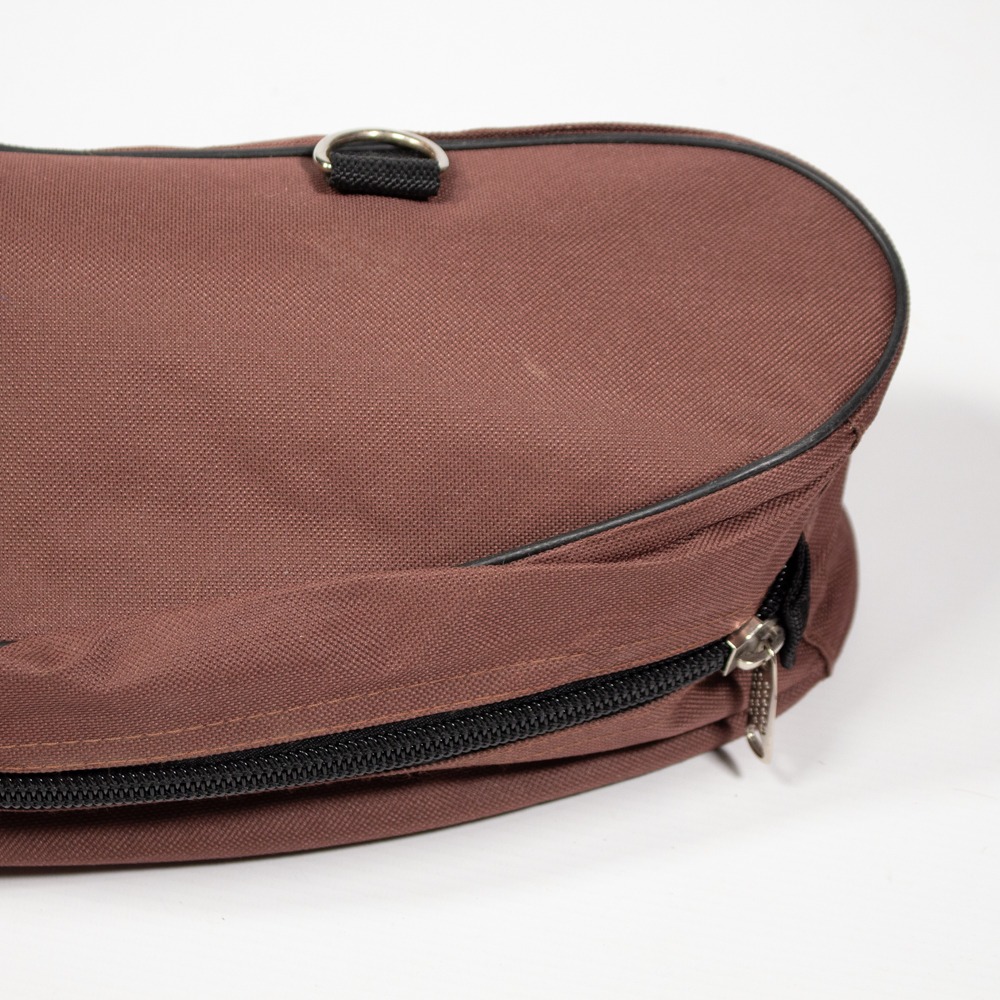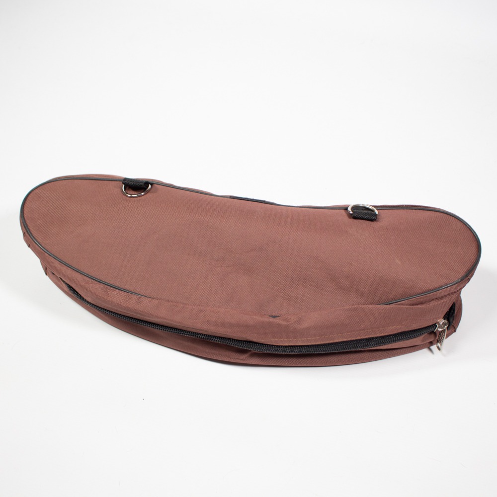 Die Satteltasche ist braun. Sie hat leichte Gebrauchsspuren.