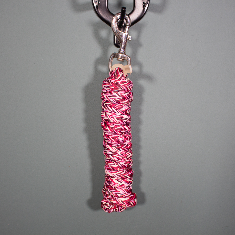Der Führstrick von Showmaster hat einen silbernen Karabiner und ist rosa. Der Strick hat leichte Gebrauchsspuren.