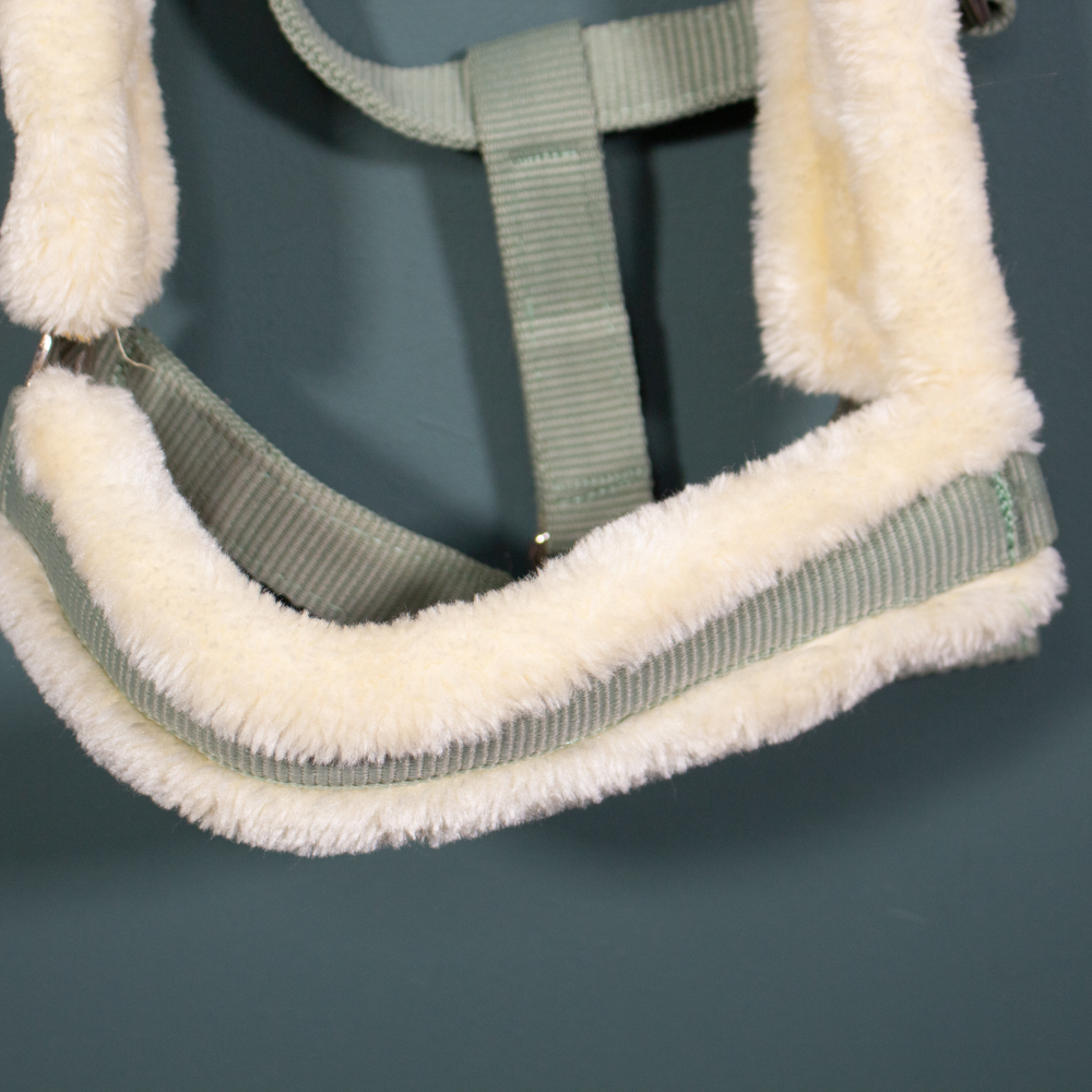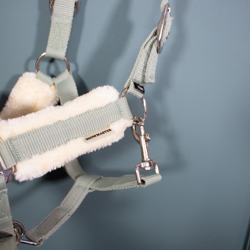 Das Halfter von Showmaster ist grün und hat Größe Pony. Es hat leichte Gebrauchsspuren.