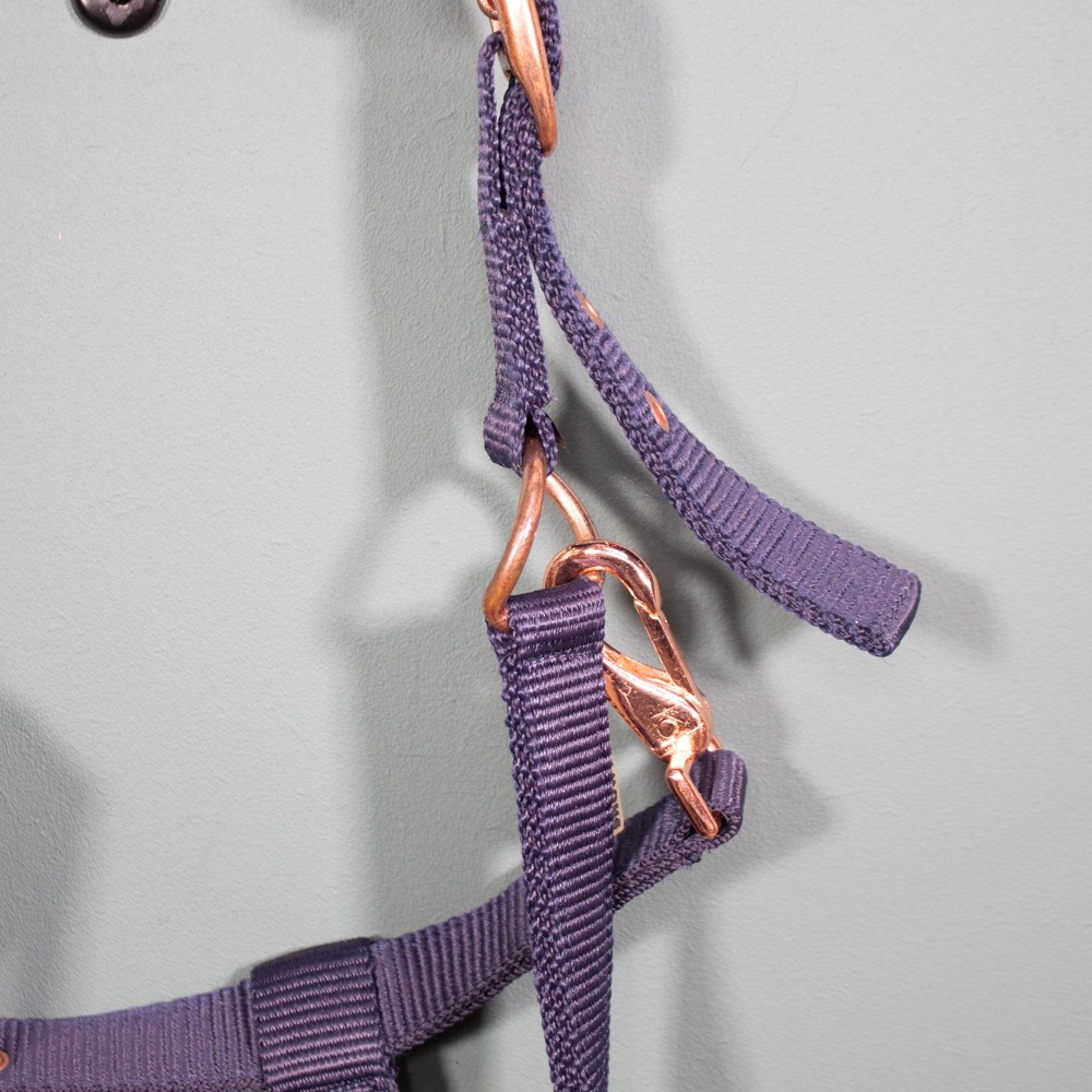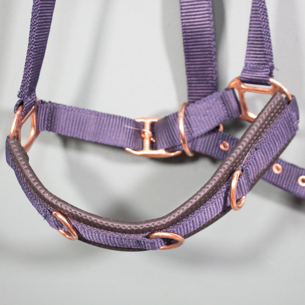 Das Longierhalfter von Showmaster ist dunkelblau und hat Größe Warmblut. Es hat leichte Gebrauchsspuren.