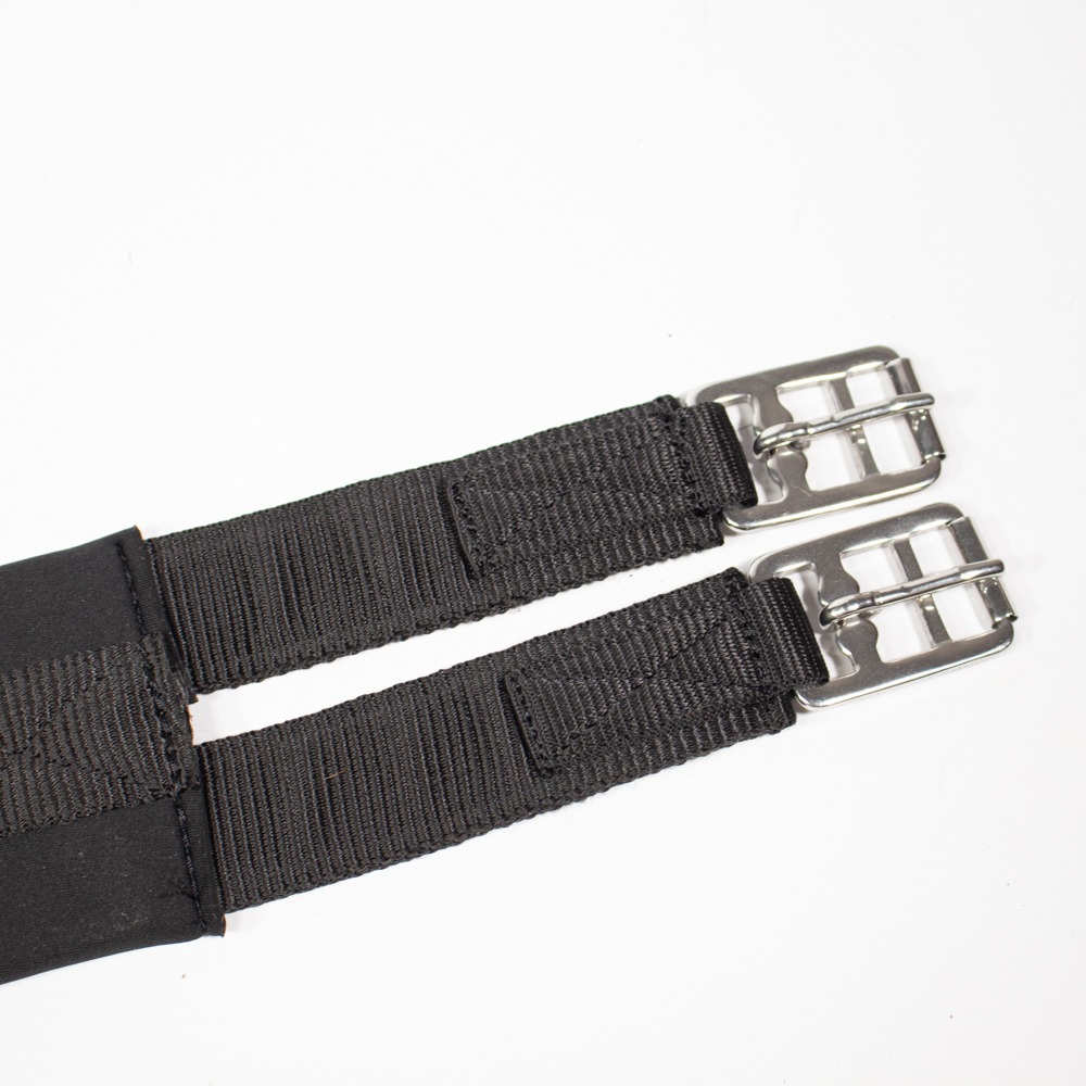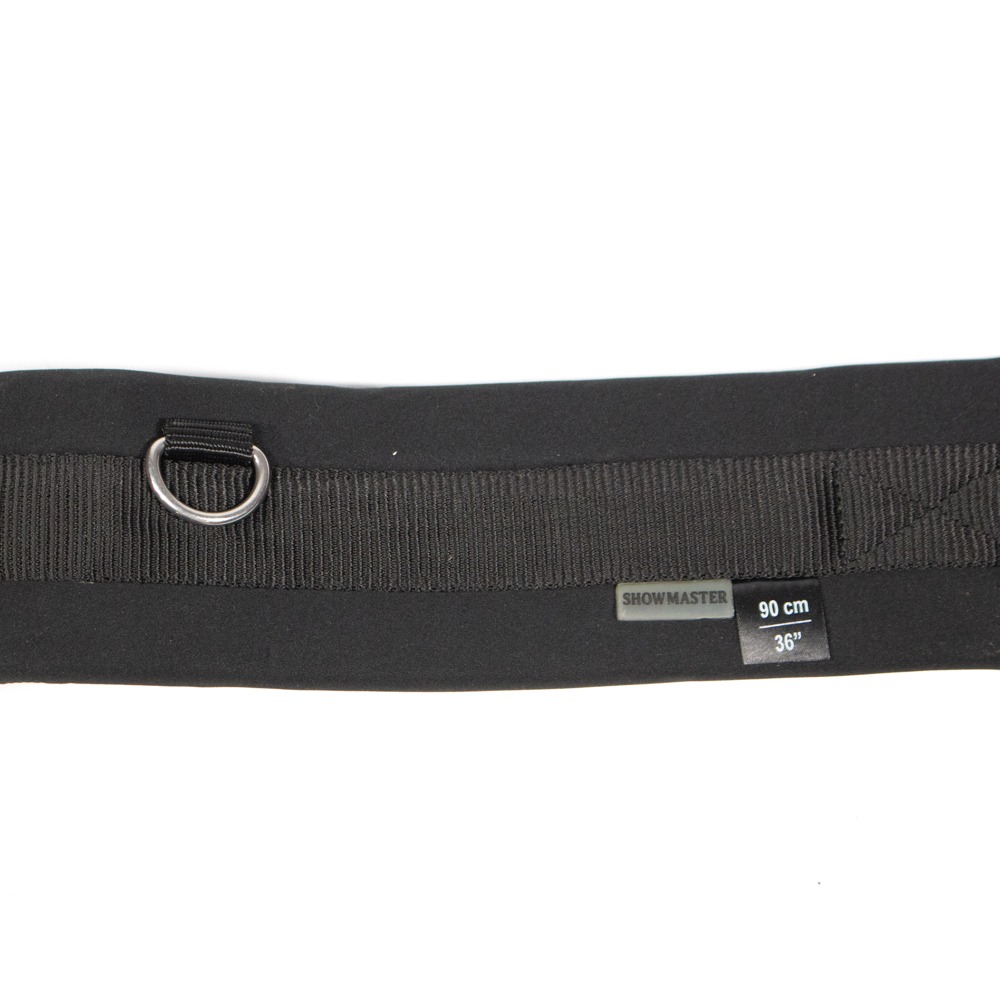 Der Sattelgurt von Showmaster ist schwarz und 90 cm lang. Der Sattelgurt hat keine Elastikeinsätze. Der Sattelgurt hat leichte Gebrauchsspuren.
