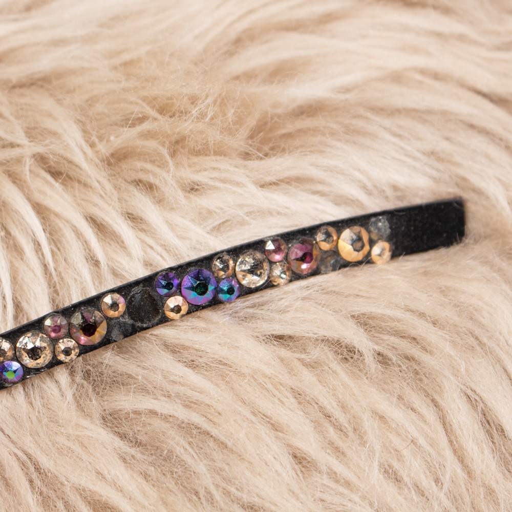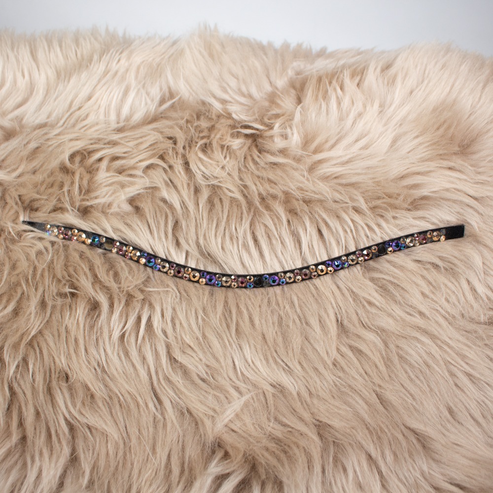 Das Inlay hat Größe Pony und bunte Glitzersteine. Der Stirnriemen hat Gebrauchsspuren.